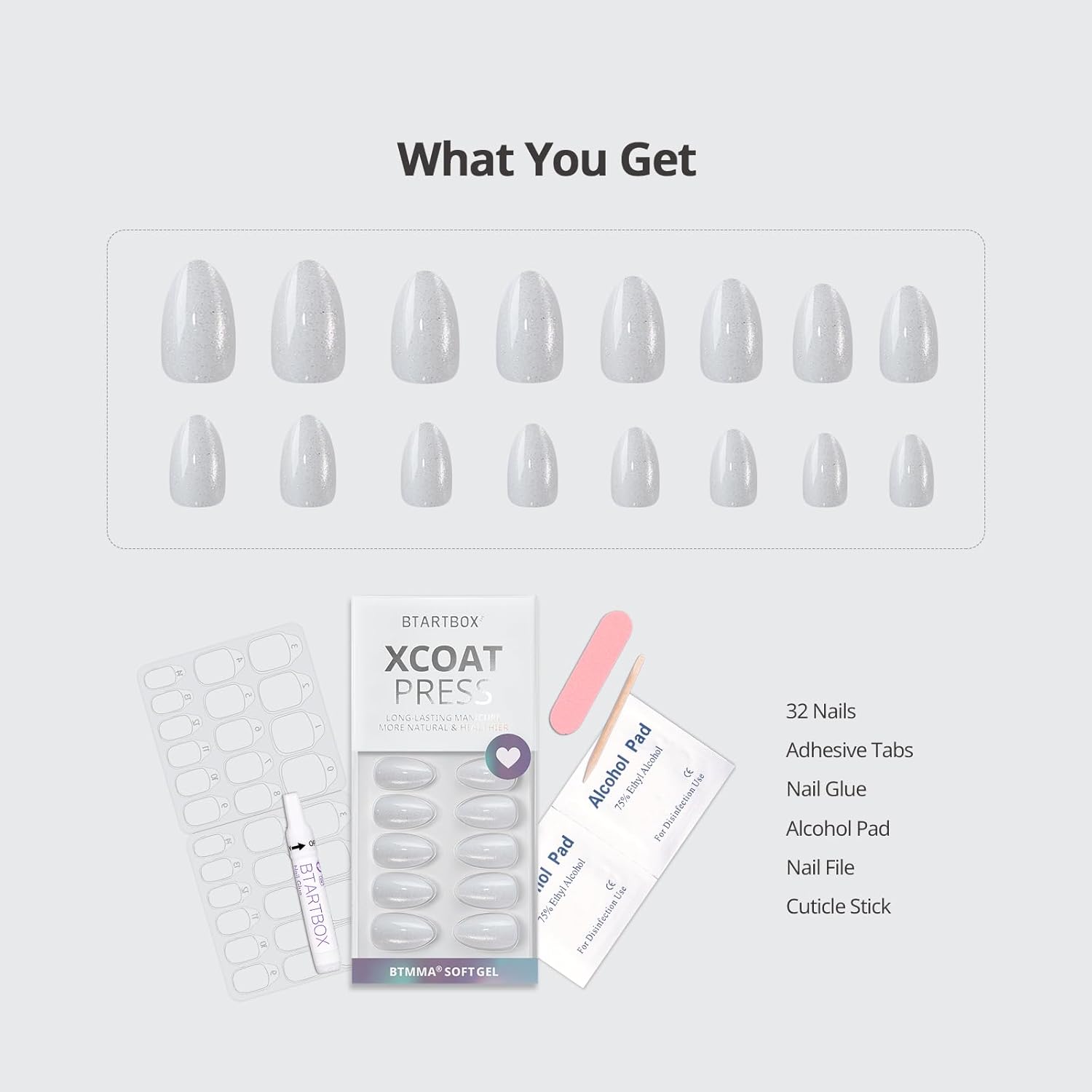- Everything You Need Included: 32 nails (16 sizes), nail glue, adhesive tabs, nail file, wooden stick, alcohol pads, and easy guide. No guesswork β just perfect nails in a box