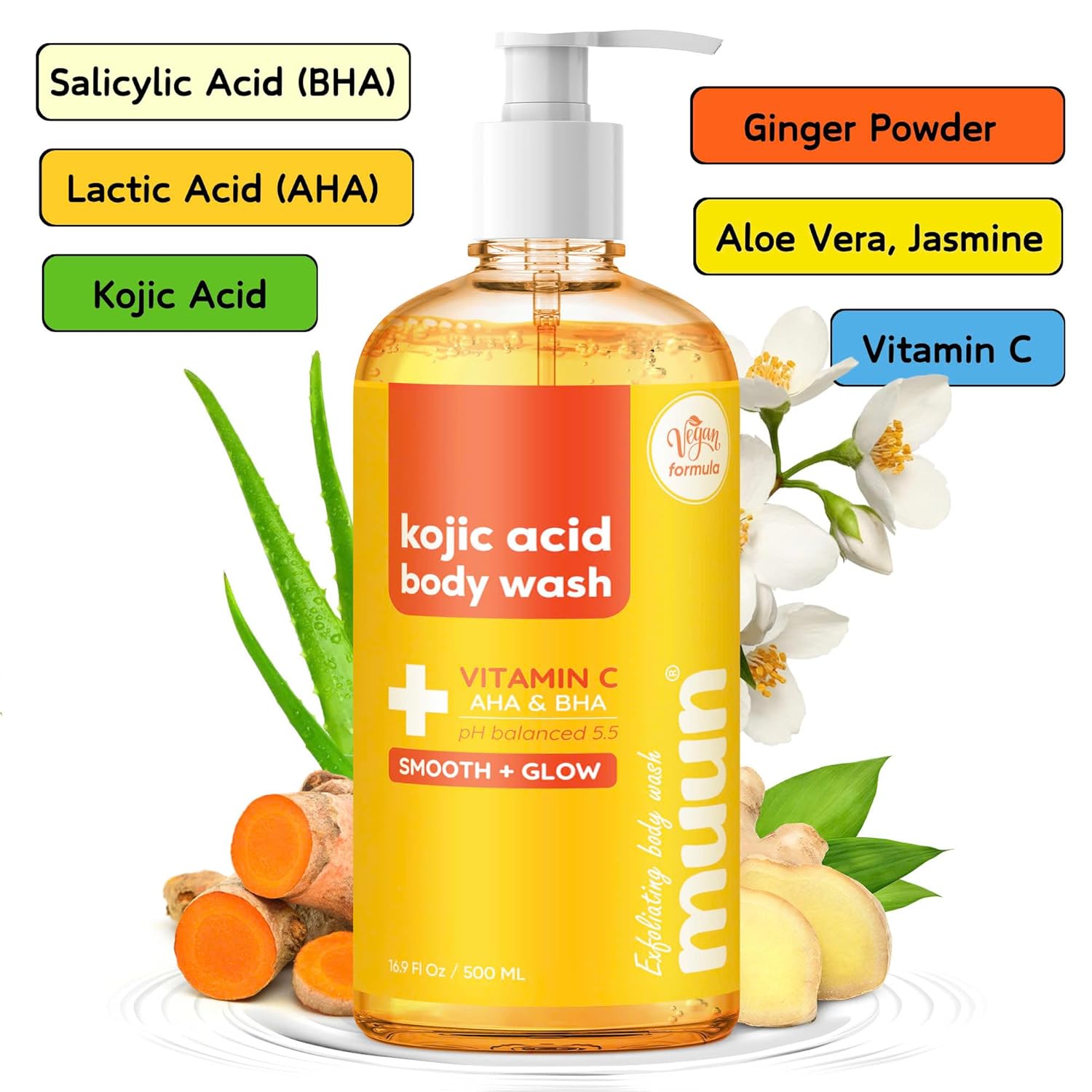 Muun Body Wash with AHA&BHA Exfoliating, 16.9 Fl Oz/500ml Prevent Ingrown Hair Even Skin Tone Underarm Bikini, Smoothe & Soften Body Wash
