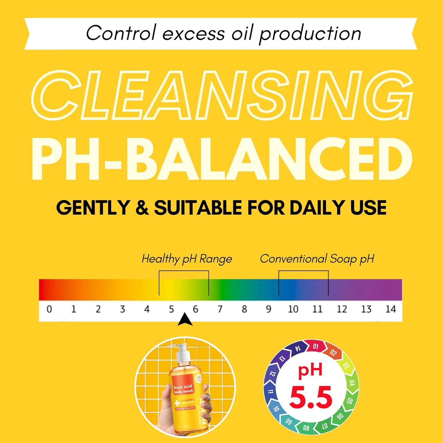 - 🧡[ pH BALANCED 5.5 FOR SKIN ] Skin-friendly pH of 5.5 to ensure a gentle yet effective cleanse for even sensitive skin. Infused with Salicylic Acid, body wash helps exfoliate rough skin and bumps, leaving it soft, smooth, and refreshed.