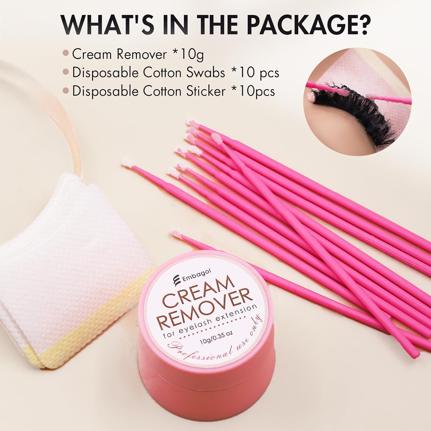 - Fast Removal: This Embagol cream remover specially developed for extra strong bonding eyelash extension glue. It can easily and quickly penetrate into the adhesive layer, dissolve and destroy the structure of the adhesive, and quickly remove it within 2-3 minutes