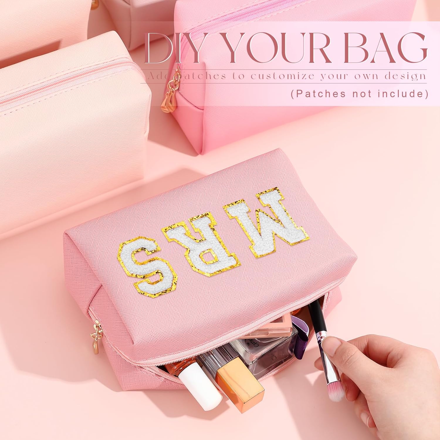 - Rich Quantity: this package comes with 15 pieces PU leather makeup bags, which are available in bright and vivid color, enough quantity and rich content to meet your use and replacement needs; You can also share them with friends or family. This item is not suitable for people under 12 years old, and the leather toiletry bag is blank, does not contain letter patches, there are patches on the picture is mainly to show that the product can be DIY by yourself