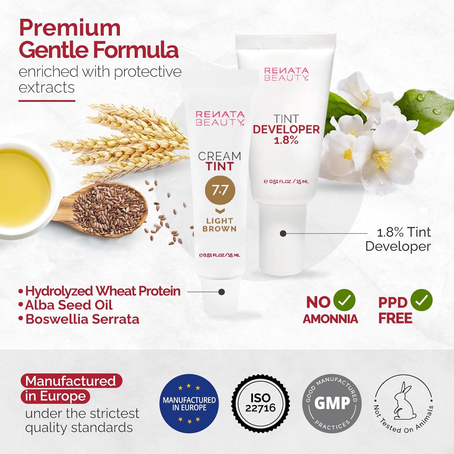 RB RENATA BEAUTY Tint Kit β Cream Hair Dye Kit with Developer and Application Brush for Spot Coloring - Covers Gray Hairs, Smudge-Proof, Long-Lasting Up to 4 Weeks, 20 Applications [Light Brown]