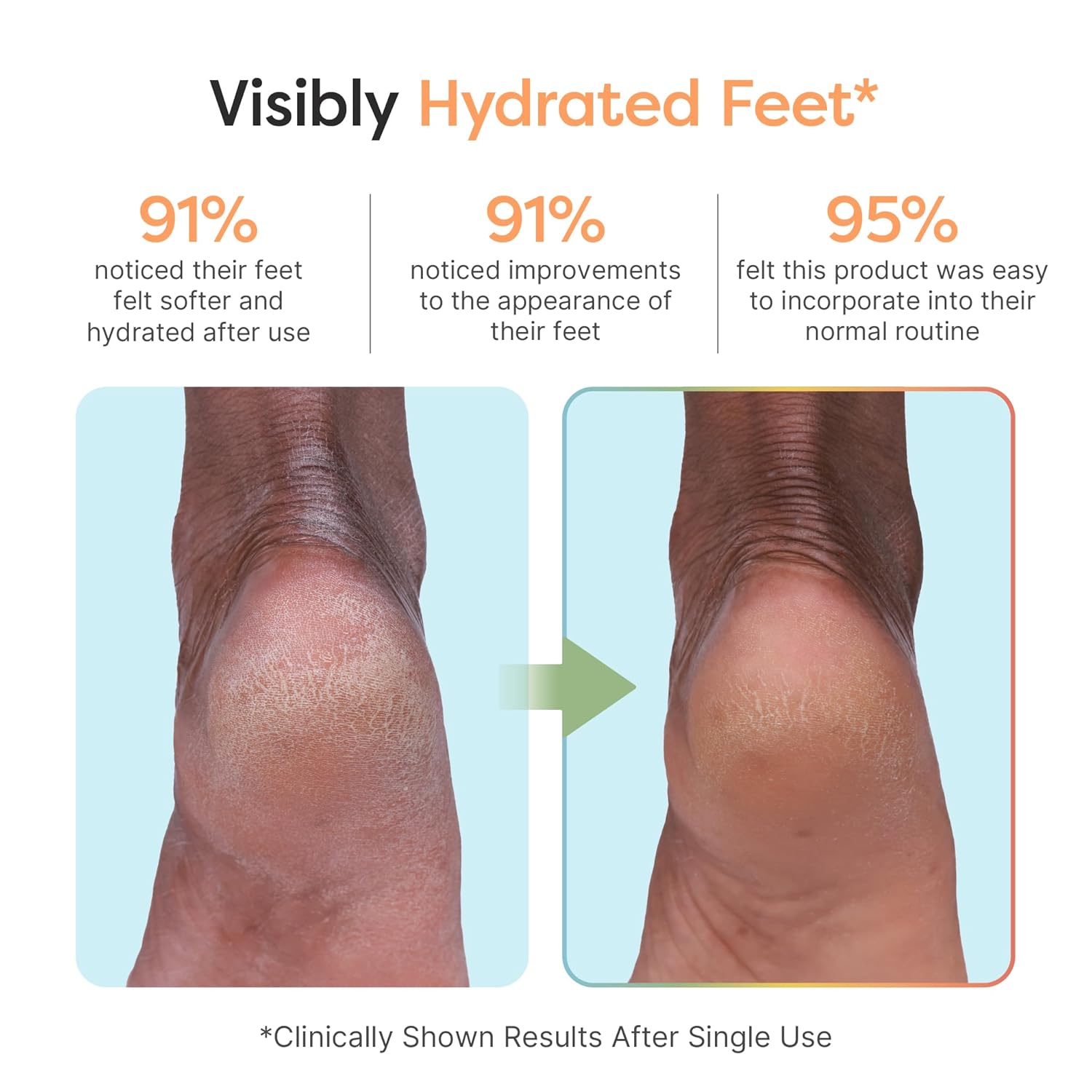 - Deep Moisture & Repair β Shea butter, jojoba oil, and squalane work together to intensely hydrate, repair dry cracked feet, and lock in moisture, leaving them soft, smooth, and rejuvenated.