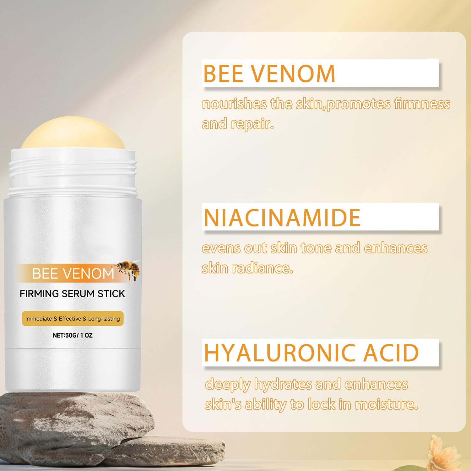 - 【Bee Venom Firming Serum】Bee Venom Firming Serum helps to enhance skin elasticity, and hydrate and nourish the skin. Restore the smooth, plump, and more elastic look of your skin with our Skin Firming Sreum Stick