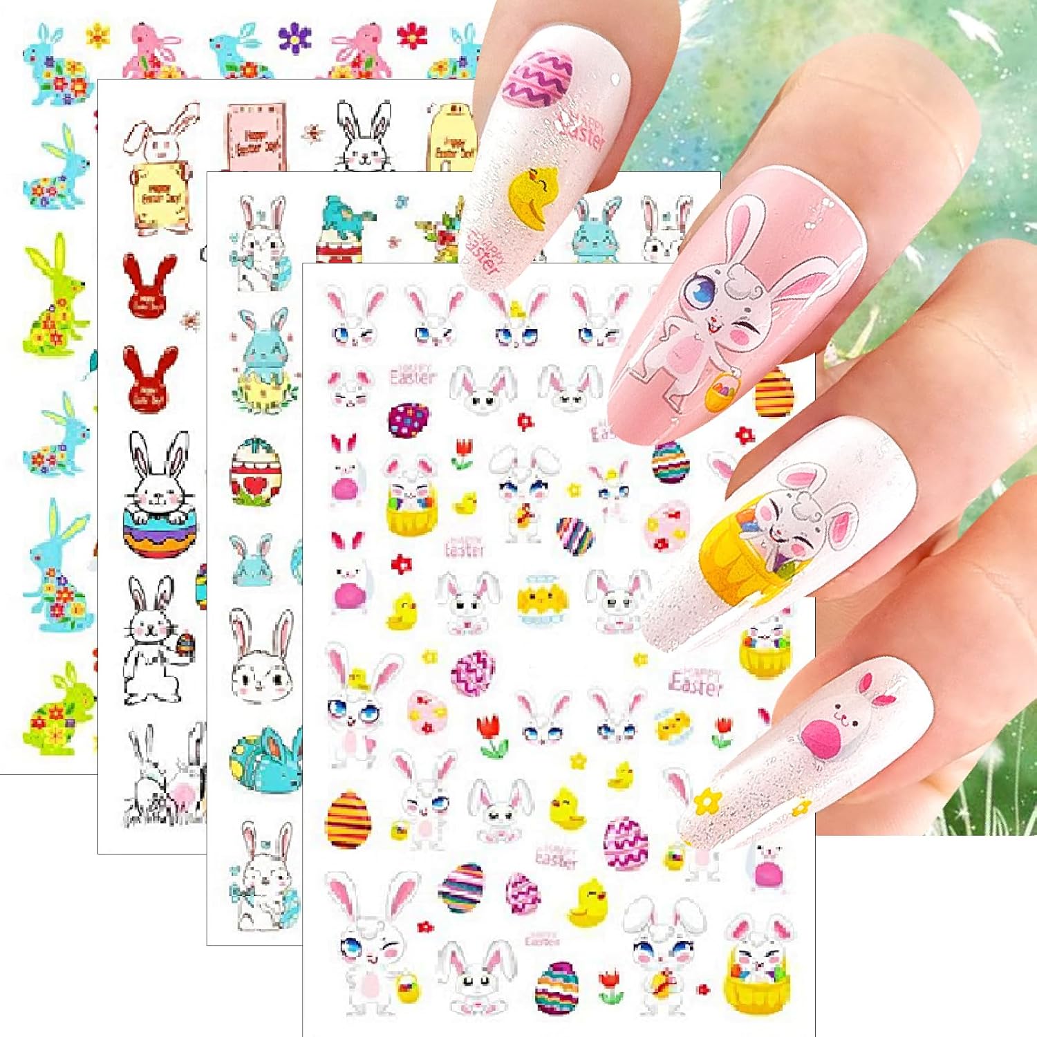 - Colorful Rabbit Self-Adhesive Design: 3D cute nail decals for nail art design is simple and quick to use, nail stickers work great on bare nails, they will stay on for a long time and will not peel off your nails, enjoy the feeling of nail art