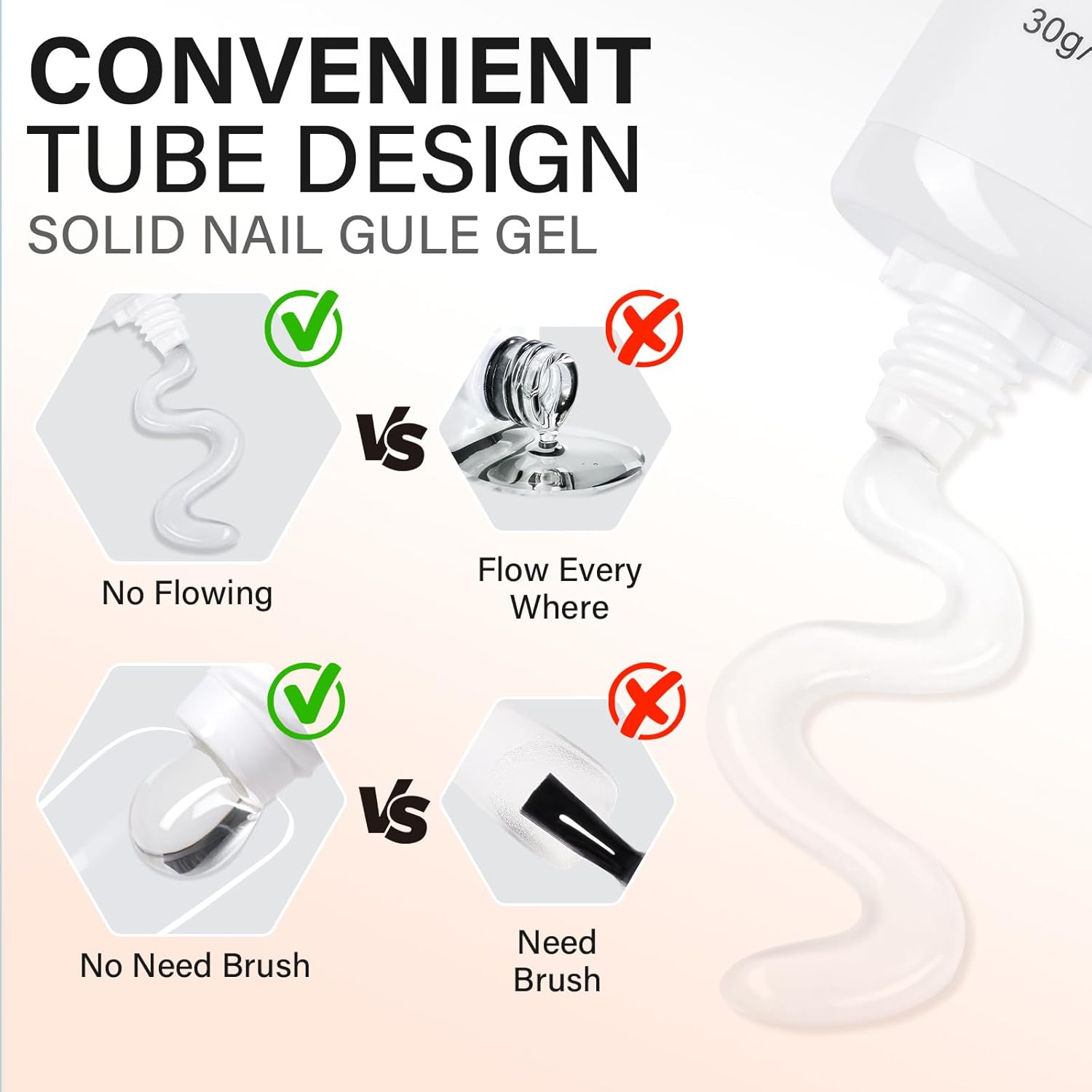 - MULTI-FUNCTIONAL NAIL GLUE: The solid nail tips glue gel can be not only used for sticking nail tips, but also can be used as 3D nail art glue, flat rhinestone glue, nail decor glue. Moreover, it can cover unevenness ensure a seamless fit, suitable for all kinds of nail bed.