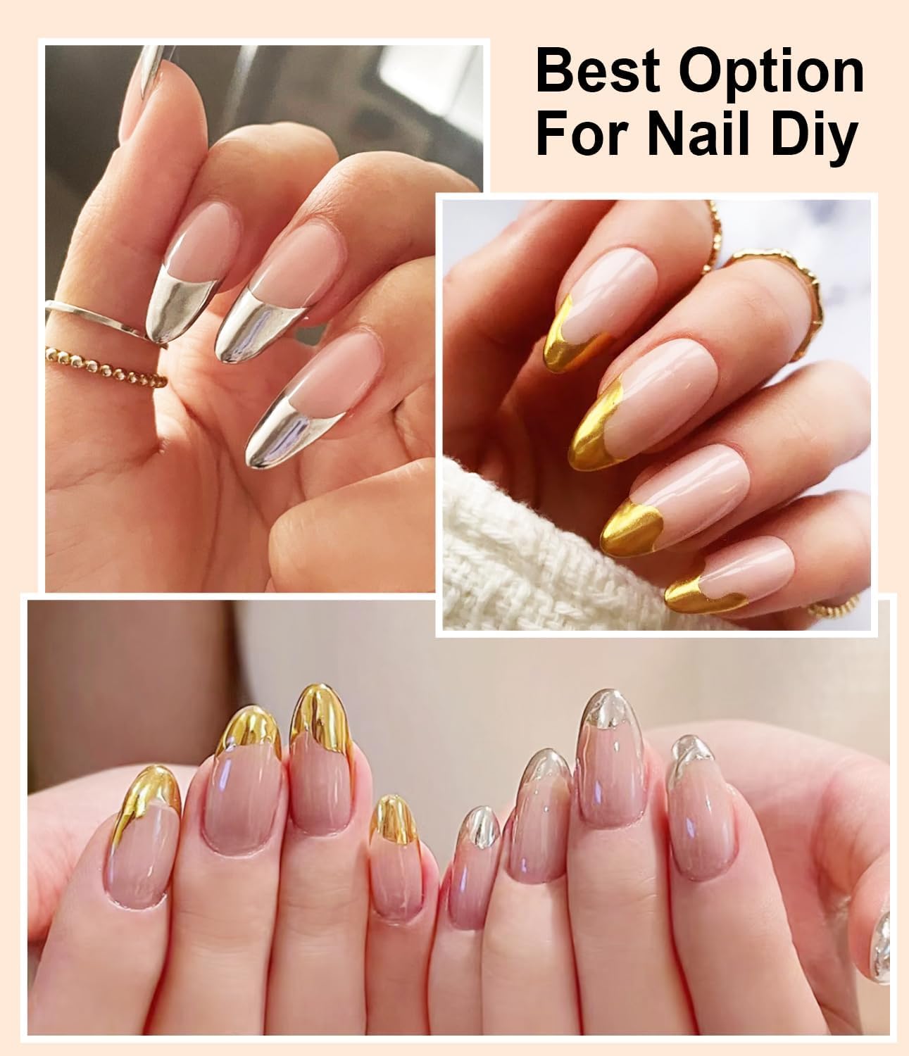 - Ultimate Metallic Mirror Effect: Add a touch of glamour to your fingertips with our gold powder for nails. Just one swipe of this shimmering gold chrome nail powder gives your nails a stunning mirror finish. Gold chrome nail powder will bring out your unique glow wherever you go!