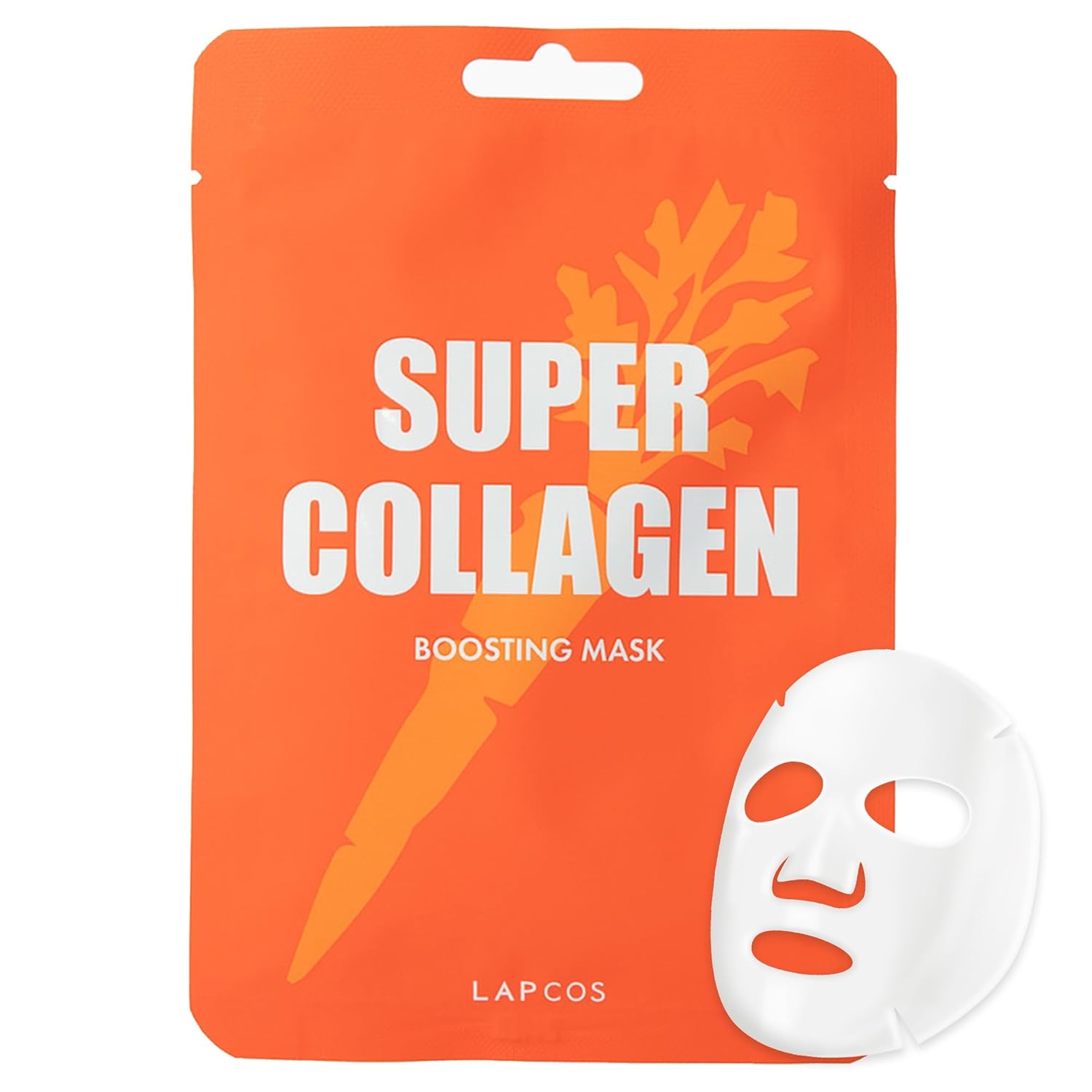LAPCOS Super Collagen Sheet Mask – Hydrating Face Masks w/Peptide Complex, Vegan Collagen, Niacinamide & Hyaluronic Acid – Revitalizing & Firming Korean Skincare Paraben-Free, Cruelty-Free (10 Pack)