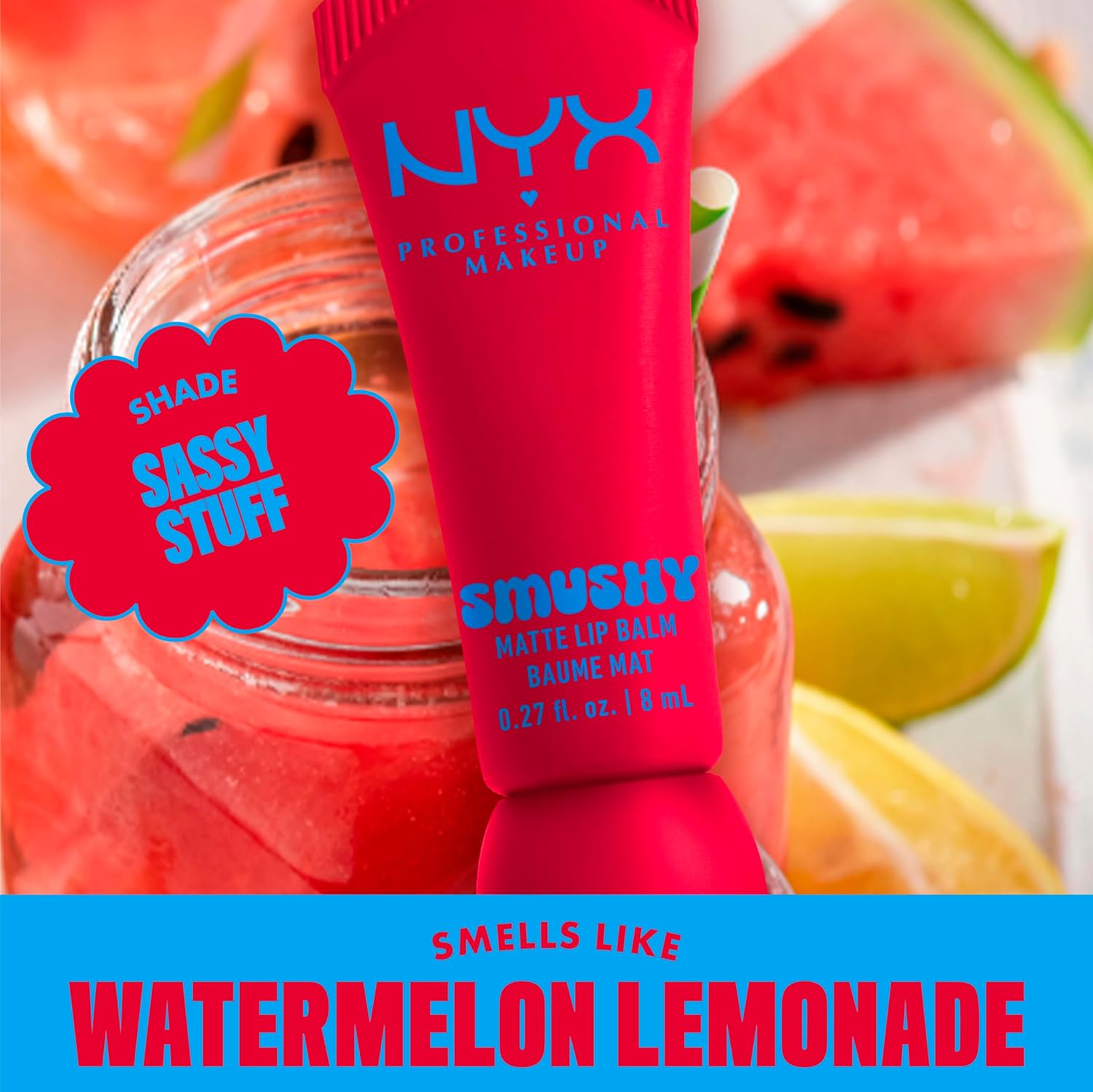 NYX PROFESSIONAL MAKEUP Smushy Matte Lip Balm, Tinted Lip Moisturizer with Soft, Matte Finish - Sassy Stuff (Candy Apple Red)