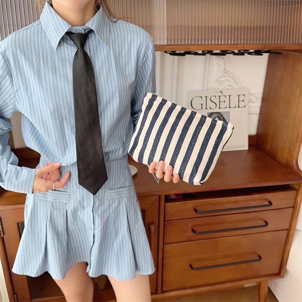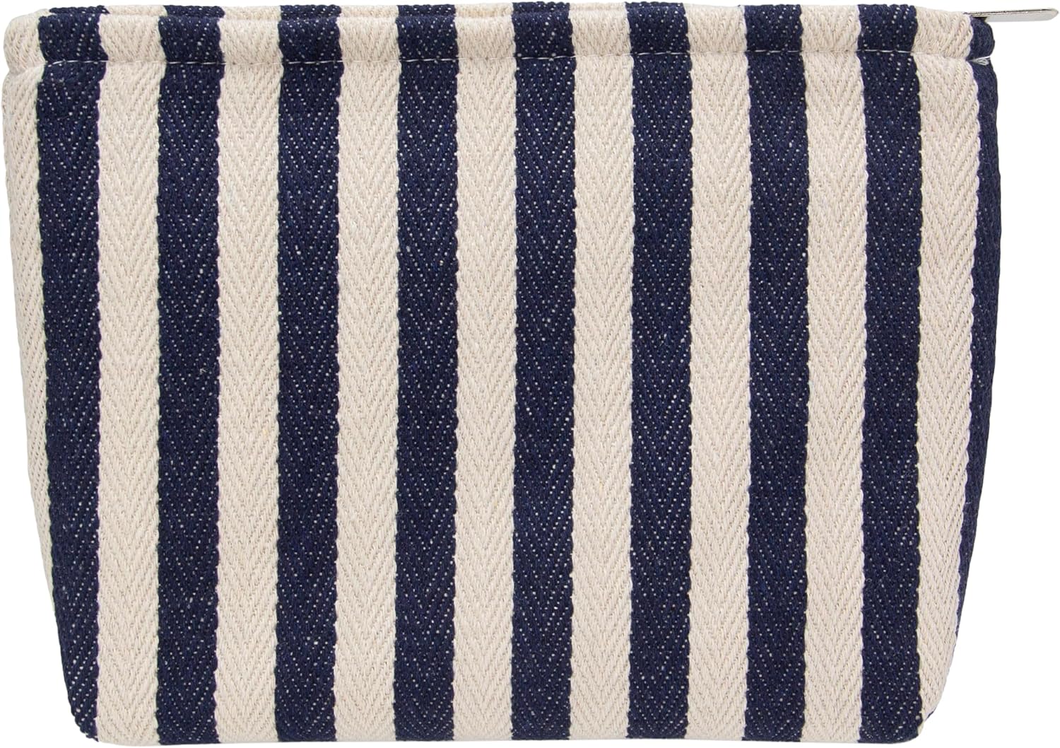 PAZIMIIK Makeup Bag Large Cotton Zipper Pouch for Purse Travel Canvas Make Up Organizer for Women Cosmetic,Stripe Navy Blue