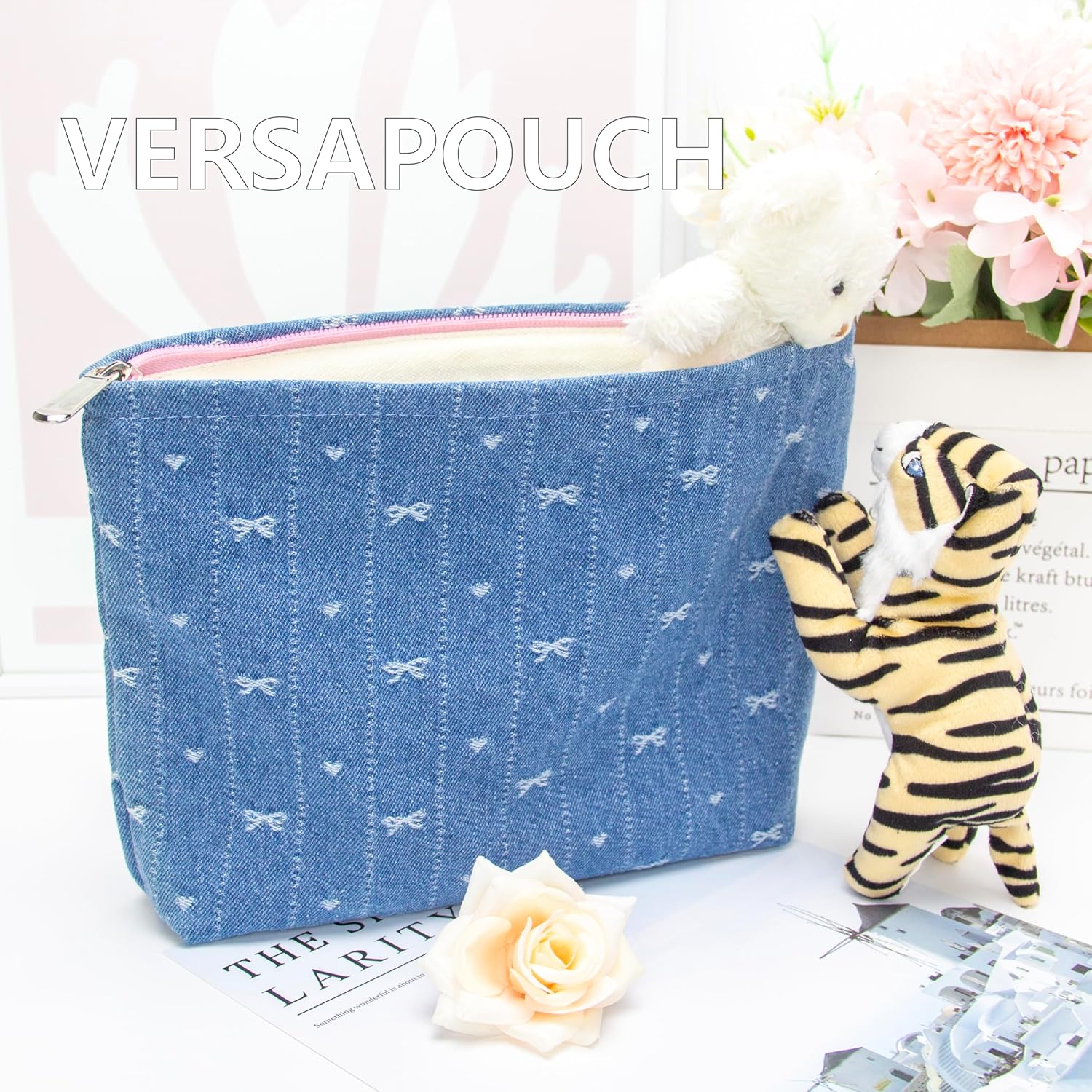 PAZIMIIK Makeup Bag Large Cotton Zipper Pouch for Purse Travel Canvas Make Up Organizer for Women Cosmetic,Jean Blue