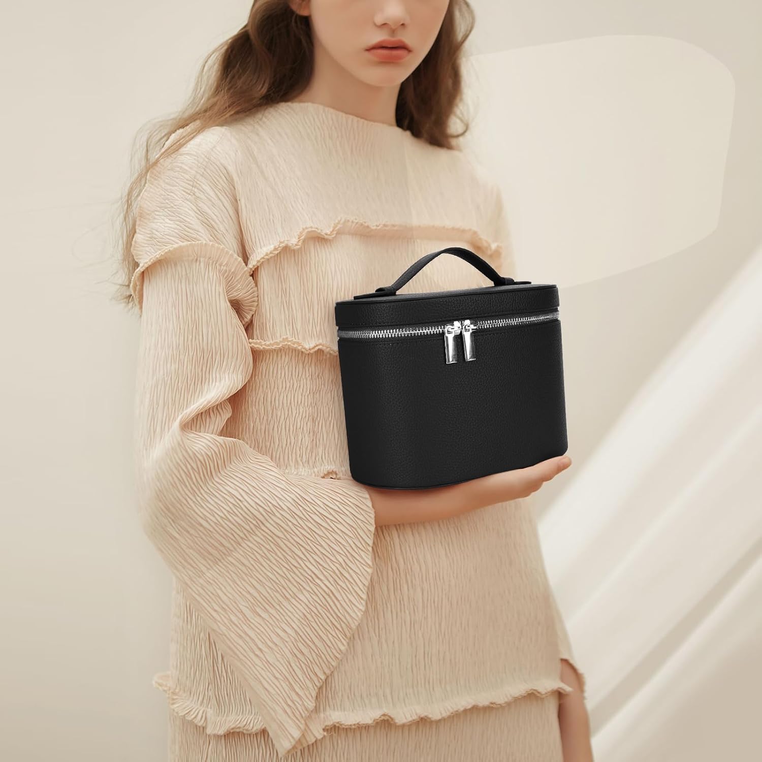 - Makeup Travel Case: The makeup organizer bag is made of PU leather, which is good in texture and durable to use, the leather surface is easy to clean.