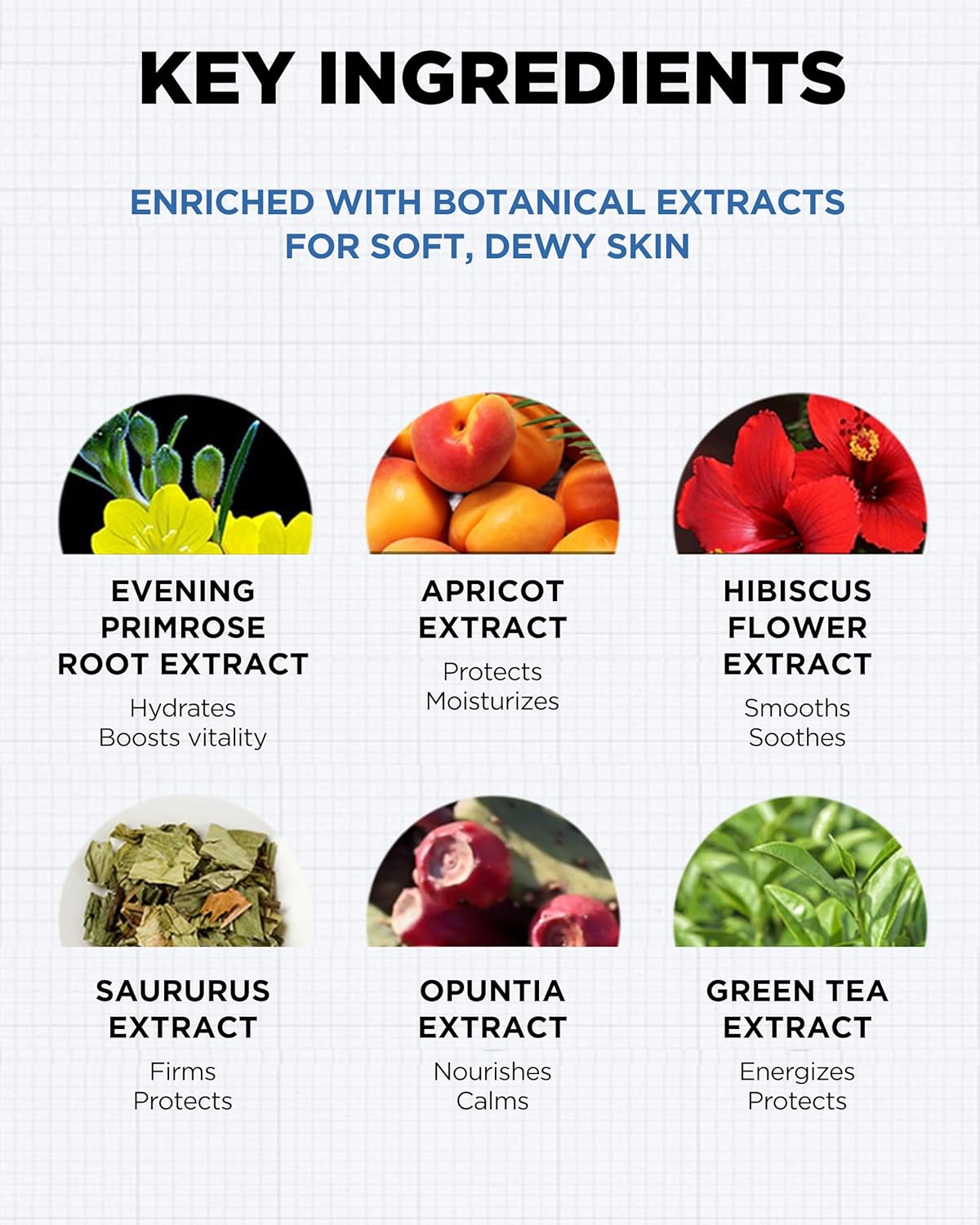 - SOOTHING BOTANICAL COMPLEX: Features green tea, cactus, hibiscus, and evening primrose extracts to calm irritated skin. These plant ingredients provide antioxidant benefits while soothing skin exposed to environmental stressors, strengthening the skin barrier and reducing signs of stress.