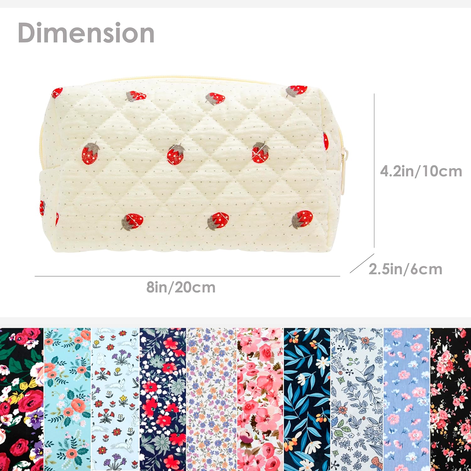 PAZIMIIK Vintage Quilted Makeup Bag Cosmetic Pouch for Brushes Pencils and Travel Make Up Accessories for Women and Girls Gauze Strawberry