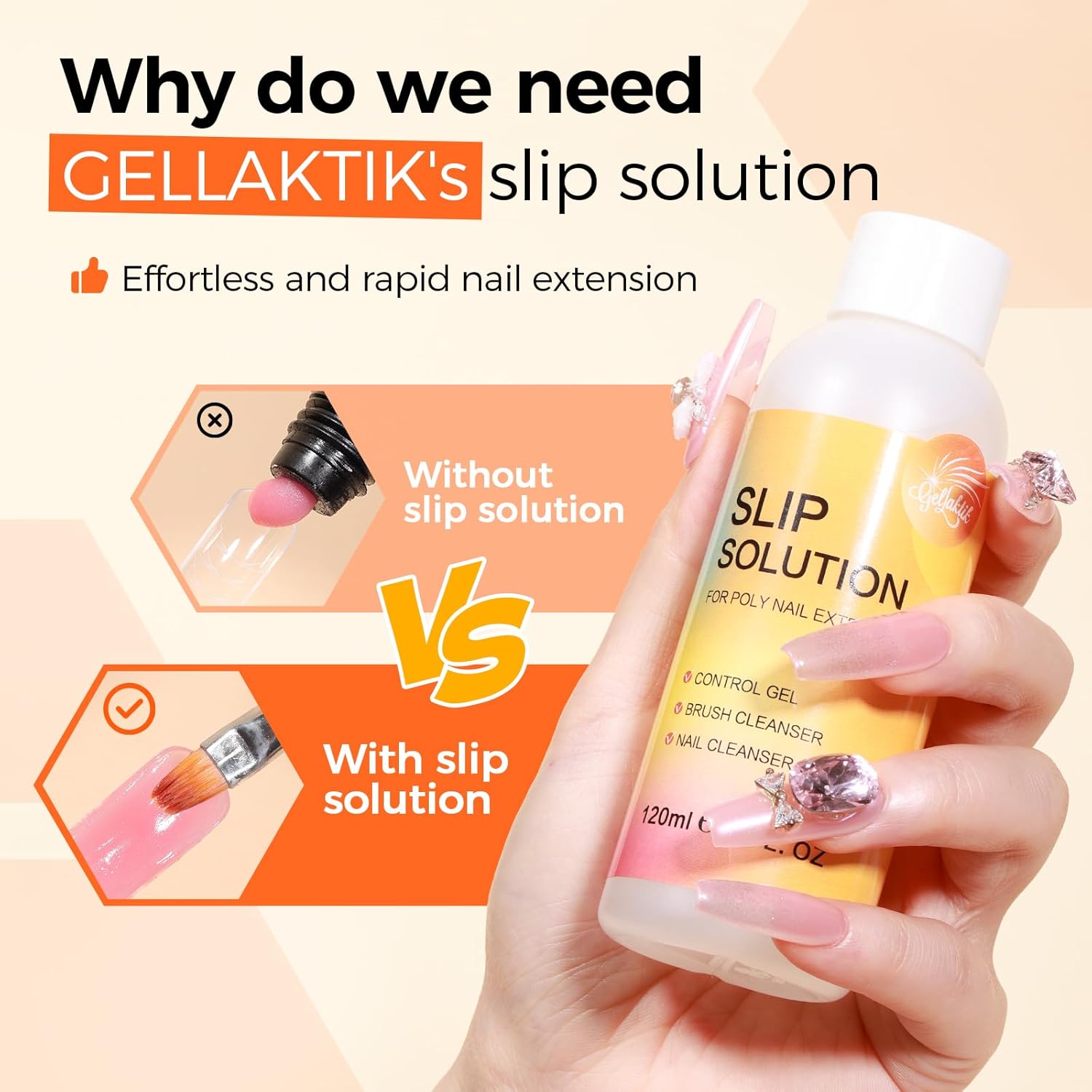 - 【Slip Solution for Poly Nail Gel】Dip your brush in slip solution to prevent poly nail gel from sticking to the brush or other nail tools, ensuring smooth application and shaping on your nails or dual forms. This slip solution also effectively removes the sticky residue from cured gel, making it ideal for both gel extension and cleanup. Additionally, it helps wipe away surface impurities, excess gel, and oils for a flawless finish.