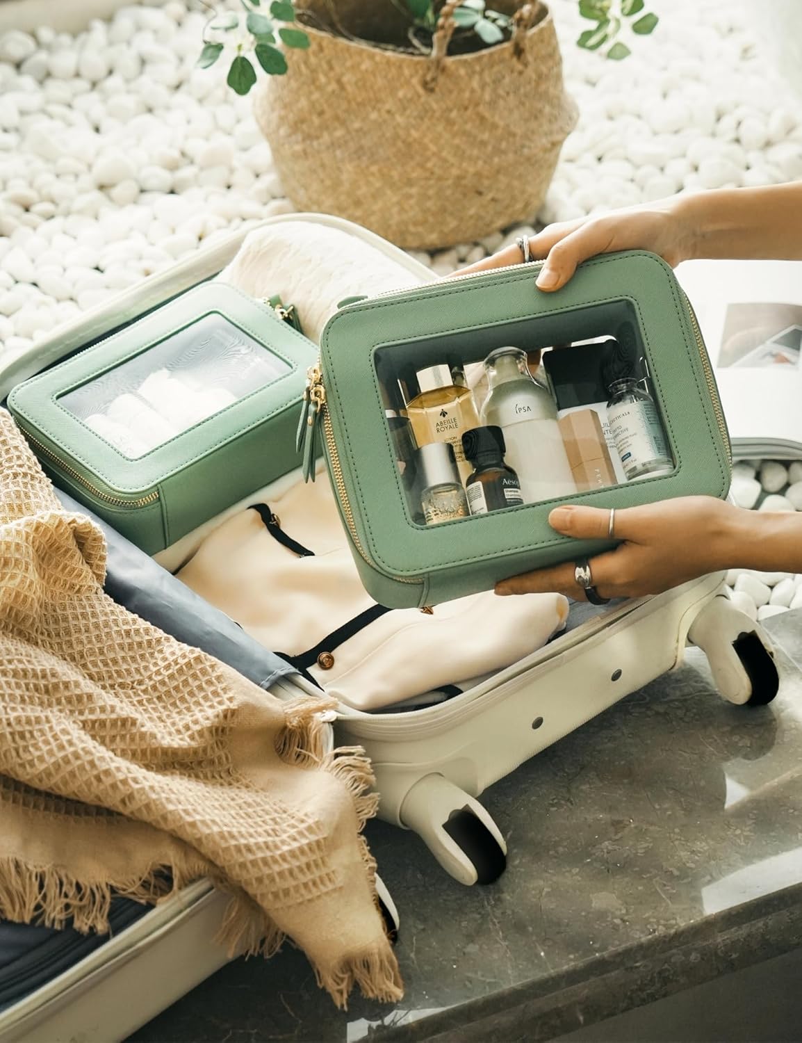- [Compact and Portable] – The green travel make up bag measures 8.3'' x 6.1'' x 2.4'' (21cm x 15.5cm x 6cm), designed to offer a compact and travel-friendly solution for organizing your makeup and toiletry essentials. It can be easily fit into a variety of bags, whether you prefer to carry it in a handbag, tote, or travel luggage.
