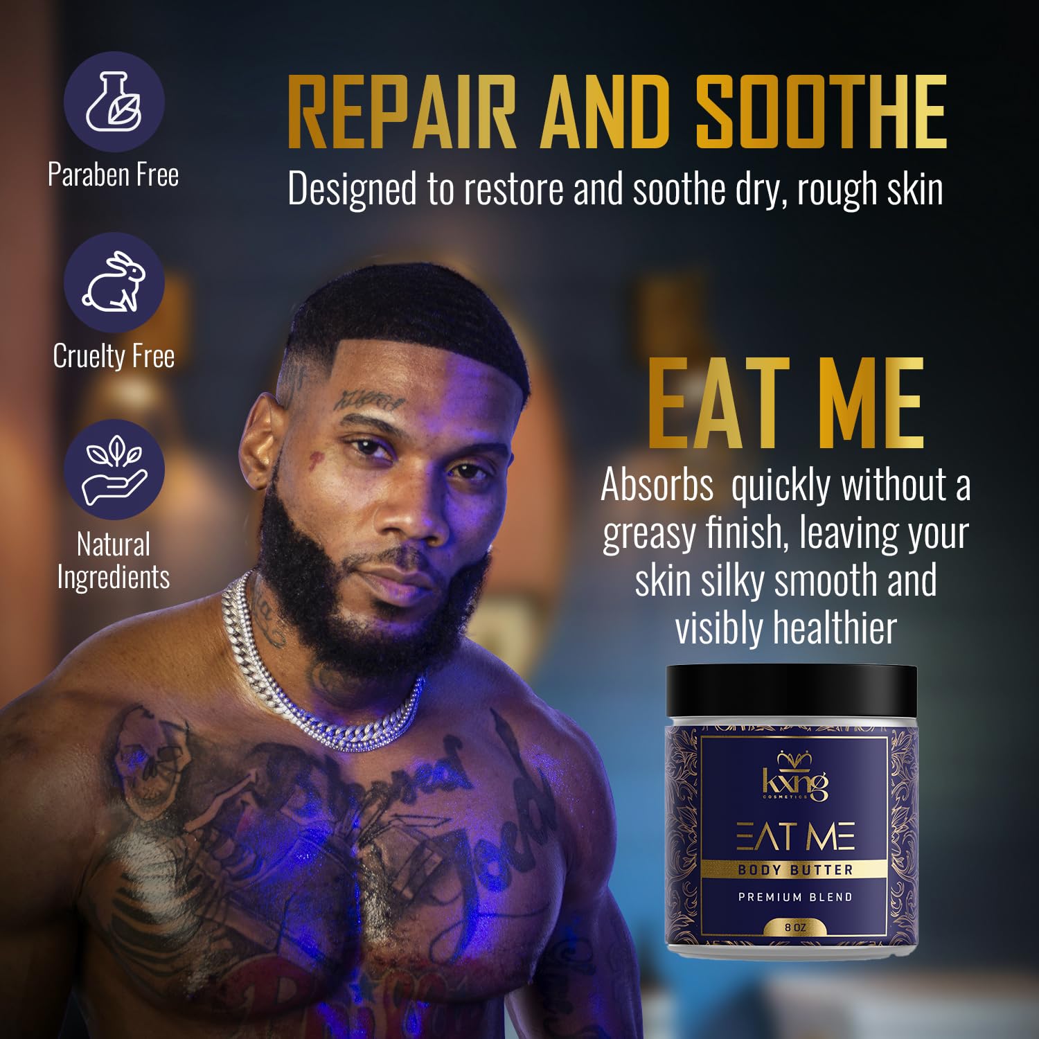 KXNG Cosmetics, Body Butter, Organic Skin Care for Men and Women, Body Moisturizer Lotions and Creams, Raw Shea Butter, Cocoa Butter, Mango, Coconut Oil, Hand, Foot, All Skin Types (Eat Me XL)