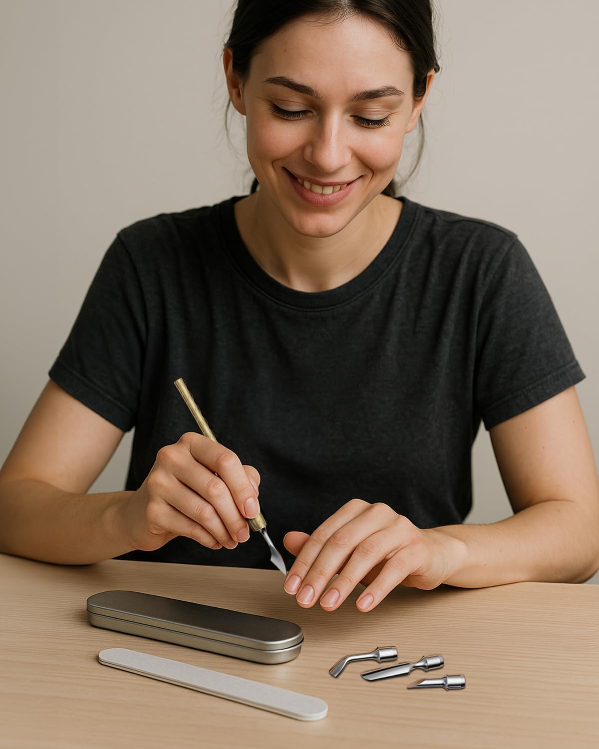 - ✅ SURGICAL-GRADE STAINLESS STEEL– Each head (Curved, Smooth, Chisel, Horseshoe) is forged in anti-rust stainless steel. Blades stay sharp for precise dead skin removal, cuticle lifting, and nail groove cleaning.