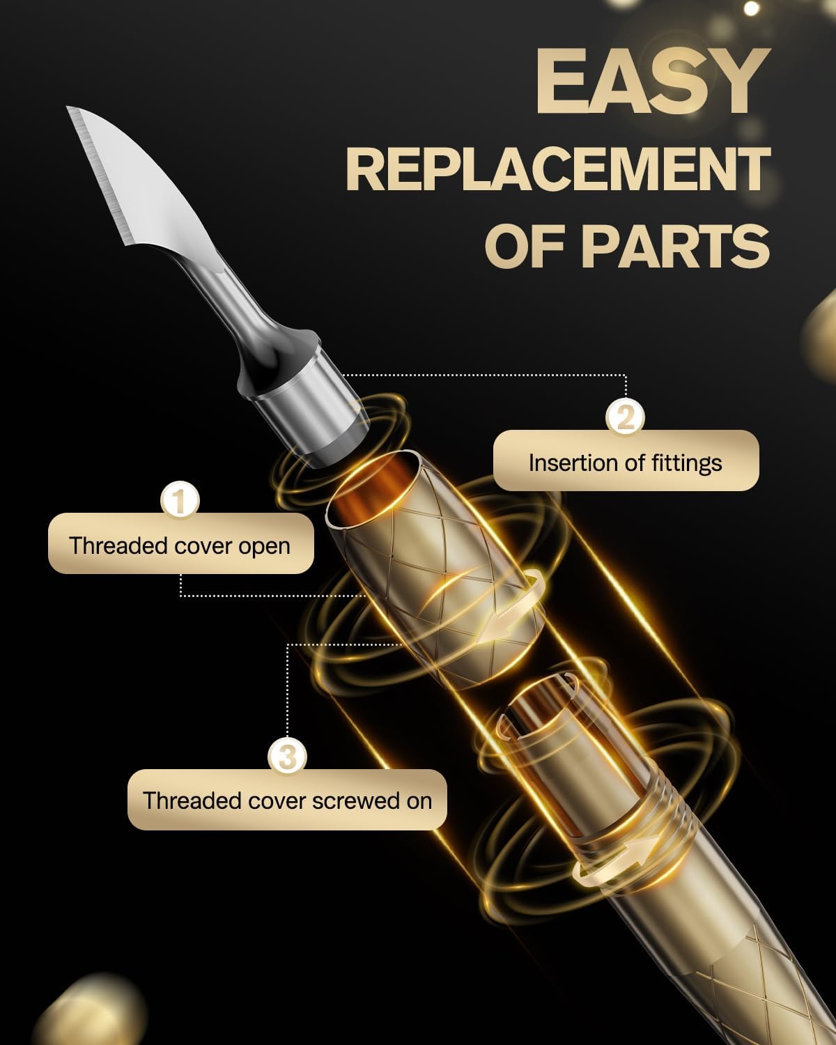 FERYES 4-in-1 Cuticle Pusher Tool-Curved/Smooth/Chisel/Horseshoe Heads + Thread-Lock Handle for Secure Salon Manicures