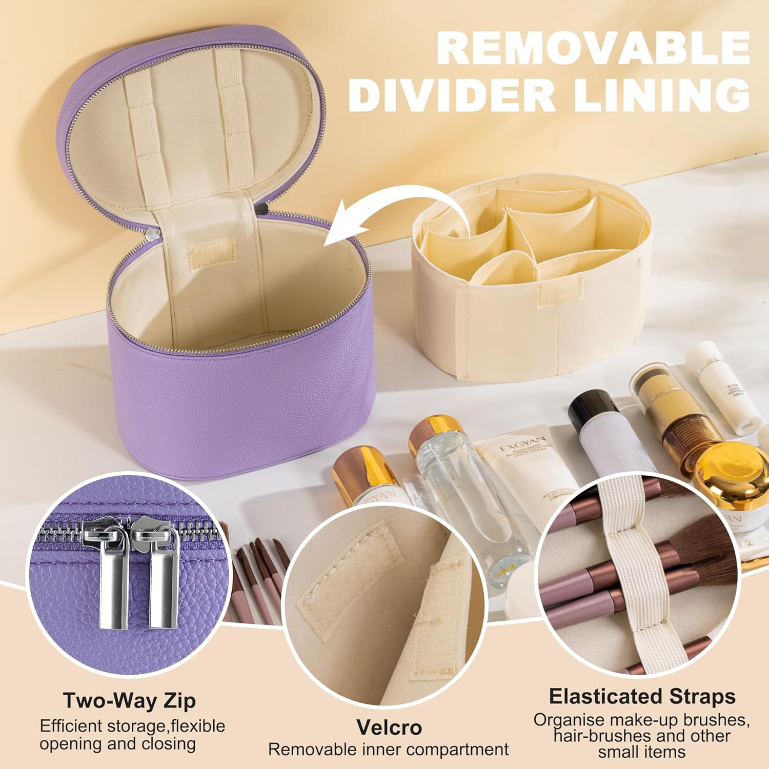- Adjustable Storage Design: Features removable velvet compartments, allowing you to customize the interior according to your specific needs. Keep makeup, tools, or skincare neatly organized and easily accessible—no more digging around for small items.