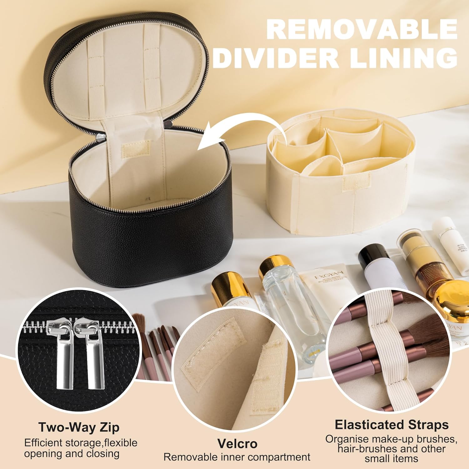 - Adjustable Storage Design: Features removable velvet compartments, allowing you to customize the interior according to your specific needs. Keep makeup, tools, or skincare neatly organized and easily accessible—no more digging around for small items.