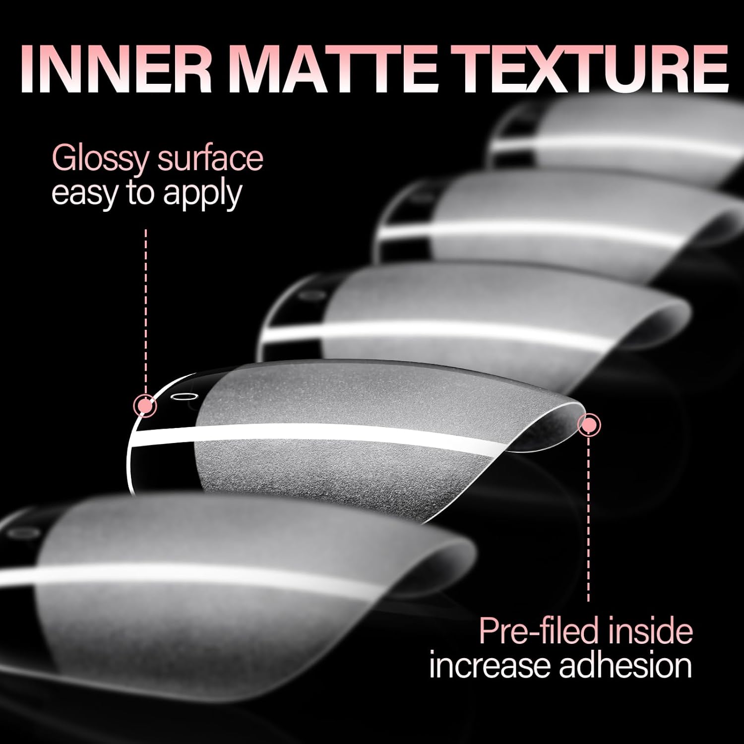 - 【AILLSA fake nails, Paired with AILLSA glue for better fit】: Our soft gel tips feature “Thin back edge, thick front edge”. The thinner back edge can make the soft nail tips fit your nails better, which will not make you feel uncomfortable. Also, the half matte nail tips are firmer bonding to your nails for a seamless fit with no air bubbles; The thickened front edge makes it not easy to break or bend, having longer lifespan.