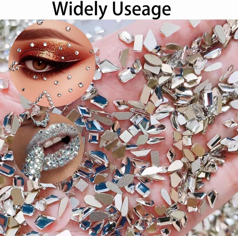 - 【60 Pcs Big Silver Rhinestones with 1290 Pcs Silver Flatback Round Stones 】ALOCIAM shiny diamonds stones for nails have 12 kinds of shapes, like heart rhinestones, drop rhinestones, rhombus rhinestones, oval rhinestones,Horse eye rhinestones... etc each 5pcs, total 60pcs big rhinestone. And 1290 pcs Silver flatback round Stones.1.6mm small diamond*450pcs,SS6 flatback rhinestones*280pcs,SS8 flatback rhinestones *220pcs, SS10 flatback rhinestones*150pcs, SS12 flatback rhinestones.