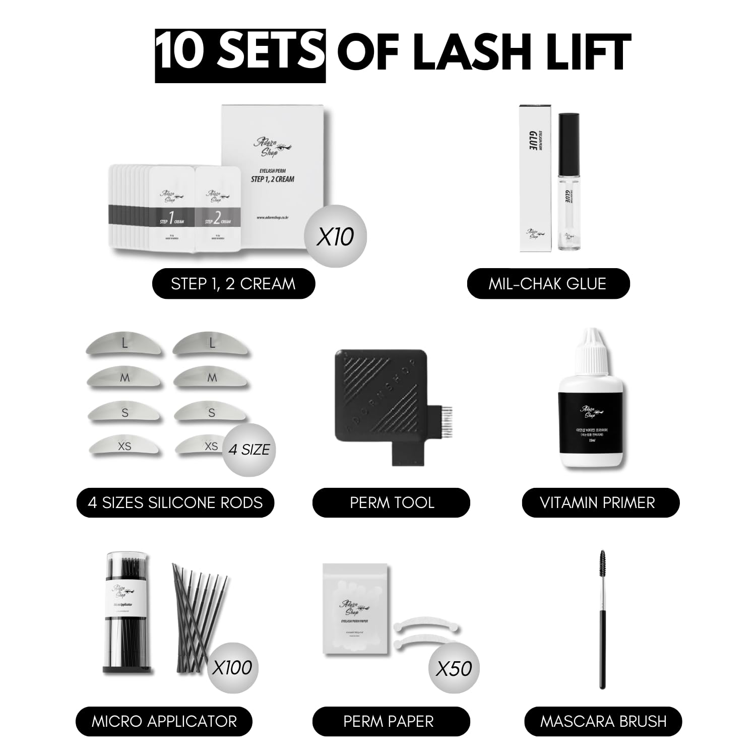 - [Hygienic 10 Sets Package] : Each kit includes 100 micro applicators and 10 sets single-use packets, making it easy to keep every application clean and hygienic. With just the right amount of product per packet, you can experience safe, precise, and mess-free lash lifts.