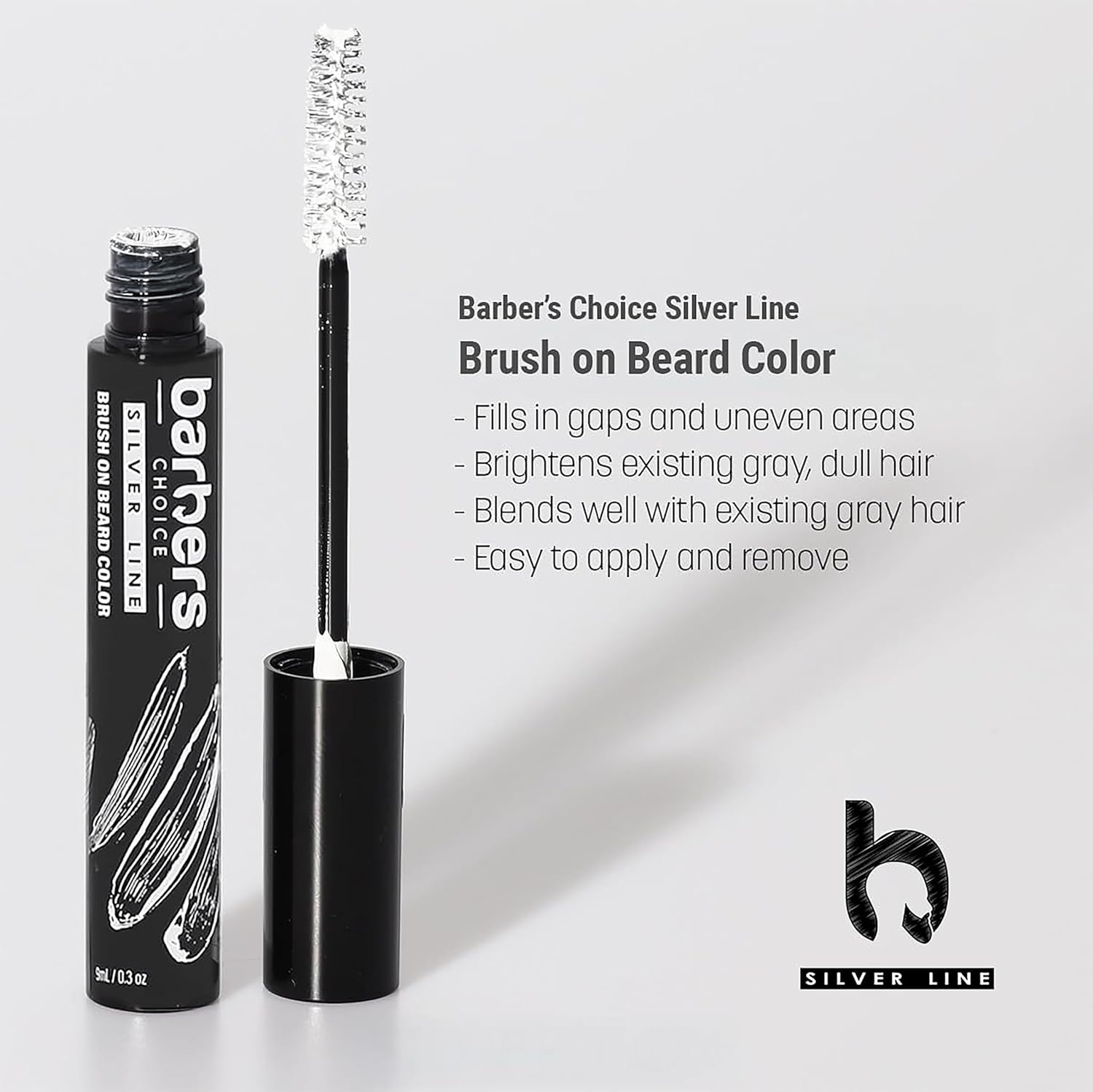 Barbers Choice Silver Line, Facial Hair Brush on Temporary Color for Silver Fox Men- Instantly Brighten White Beards, Mustache & Sideburns, Less Yellow, Easy Application, Off-White