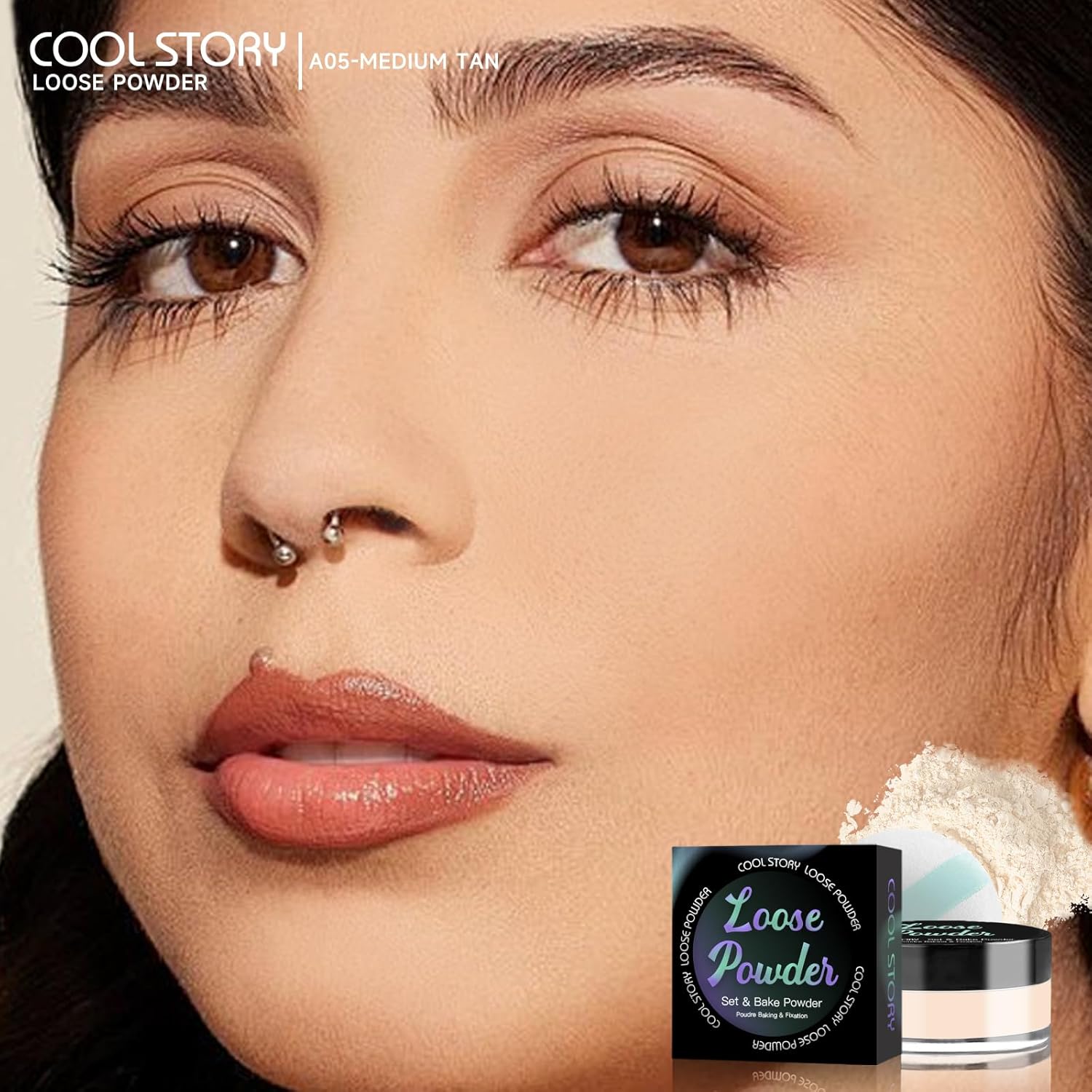 Loose Setting Powder, Bake Makeup Powder Full Coverage Matte Finish (Medium Tan, 6g/O.21oz)