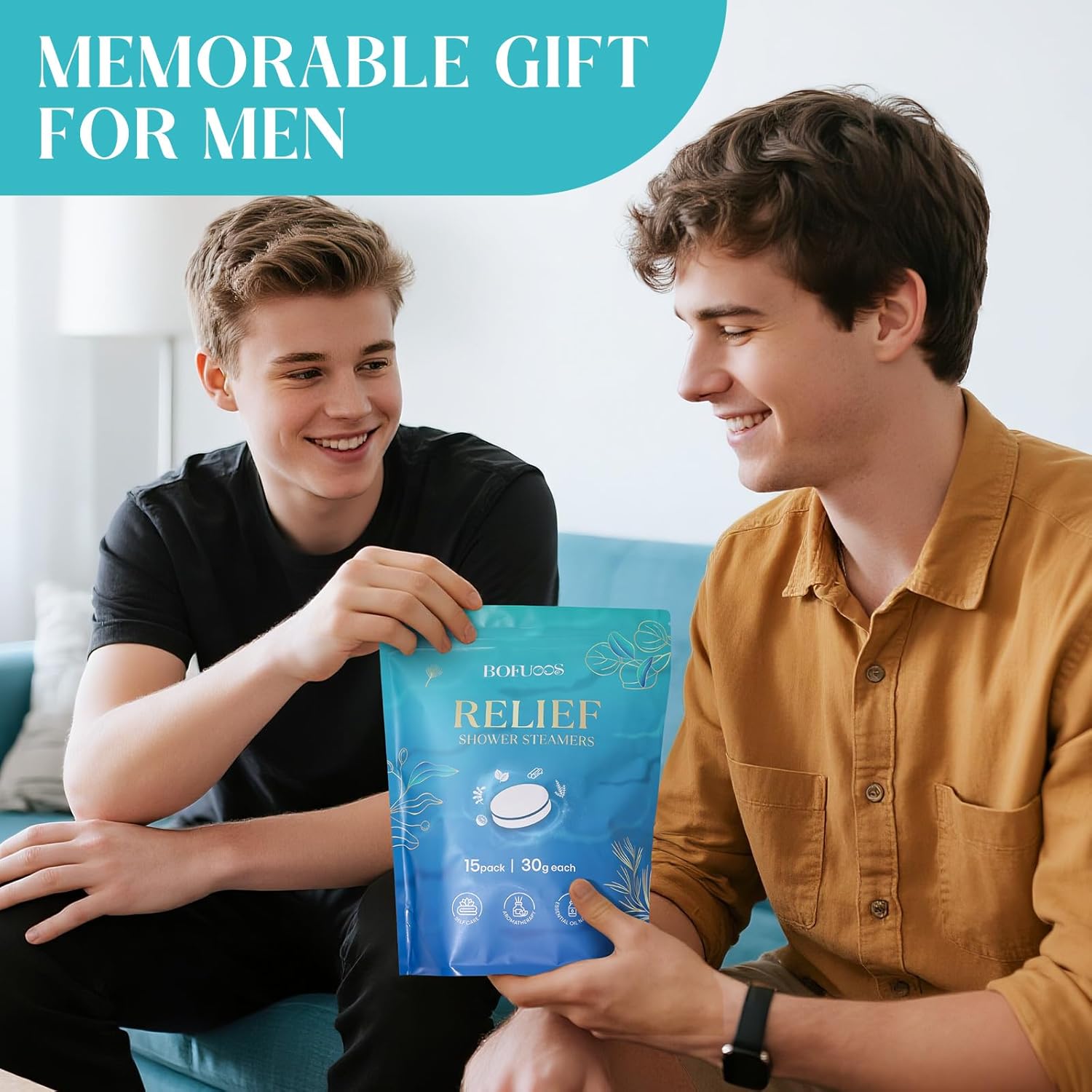 Shower Steamers Aromatherapy, Birthday Gifts for Men Teen, Stocking Stuffers White Elephant Christmas Gift for Adults, Natural Essential Oils Bath Bombs Relaxation SPA – 15 Tablets