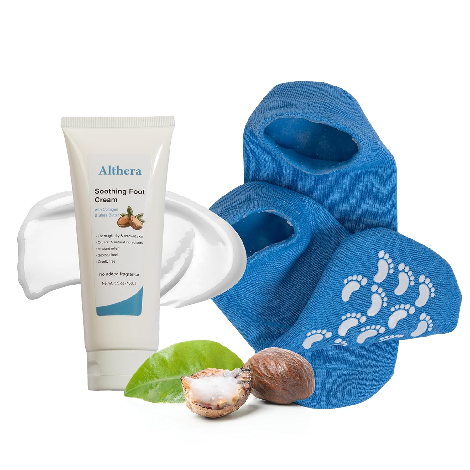 soothing Foot Cream with Collagen, Lactic Acid, Urea & Shea Butter – 3.5oz Intensive Repair for Dry Cracked Heels, Includes Moisturizing Sock for Overnight Hydration (full sock)