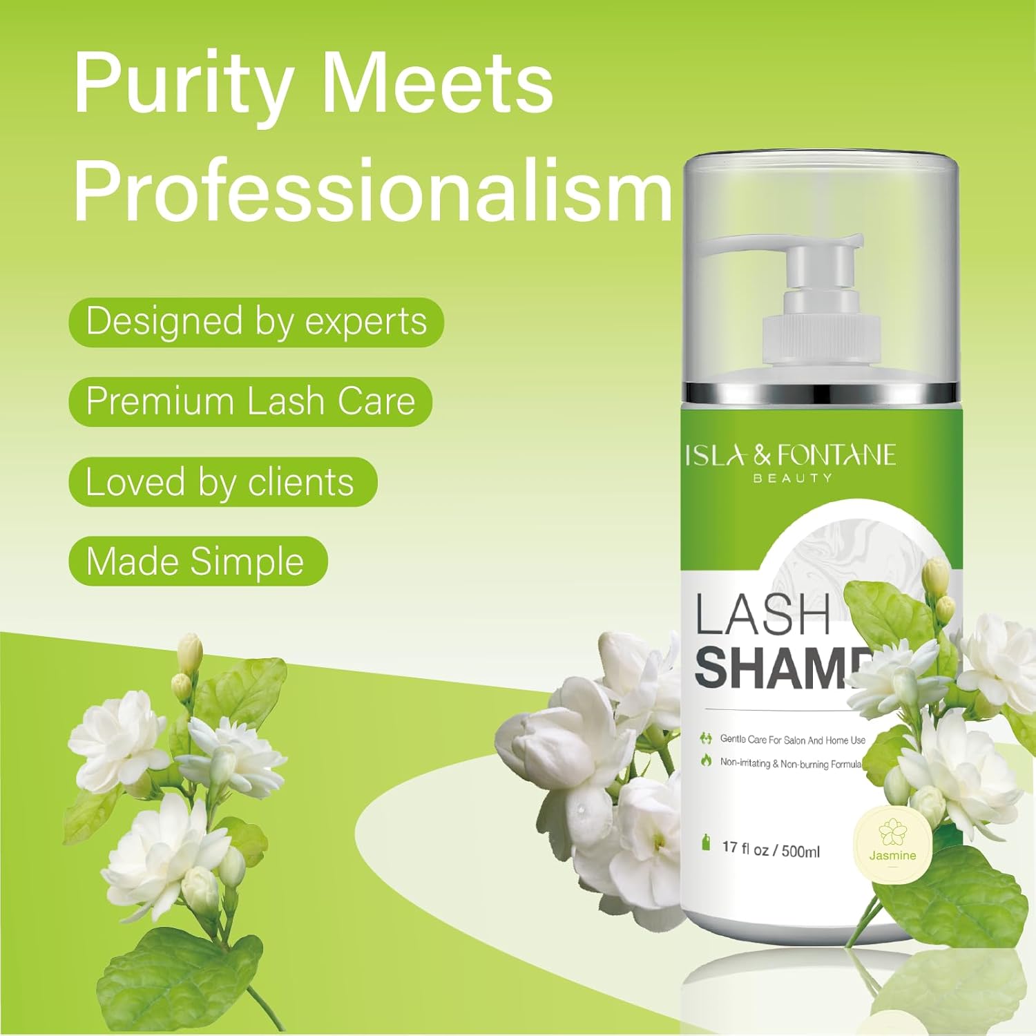 ISLA & FONTANE Lash Shampoo Bulk – Multi-Scent Series – 17 fl oz / 500ml | Gentle Eyelash Cleanser for Lash Extensions | Non-Irritating | Professional Lash Bath Foam For Salon And Home Use (Jasmine)