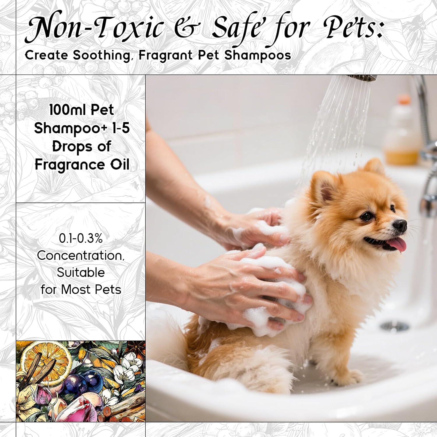 - Pet-Safe Formula β Certified pet-friendly and non-toxic when properly diluted. Safely add to pet grooming & odor control products for a soothing, aromatic experience