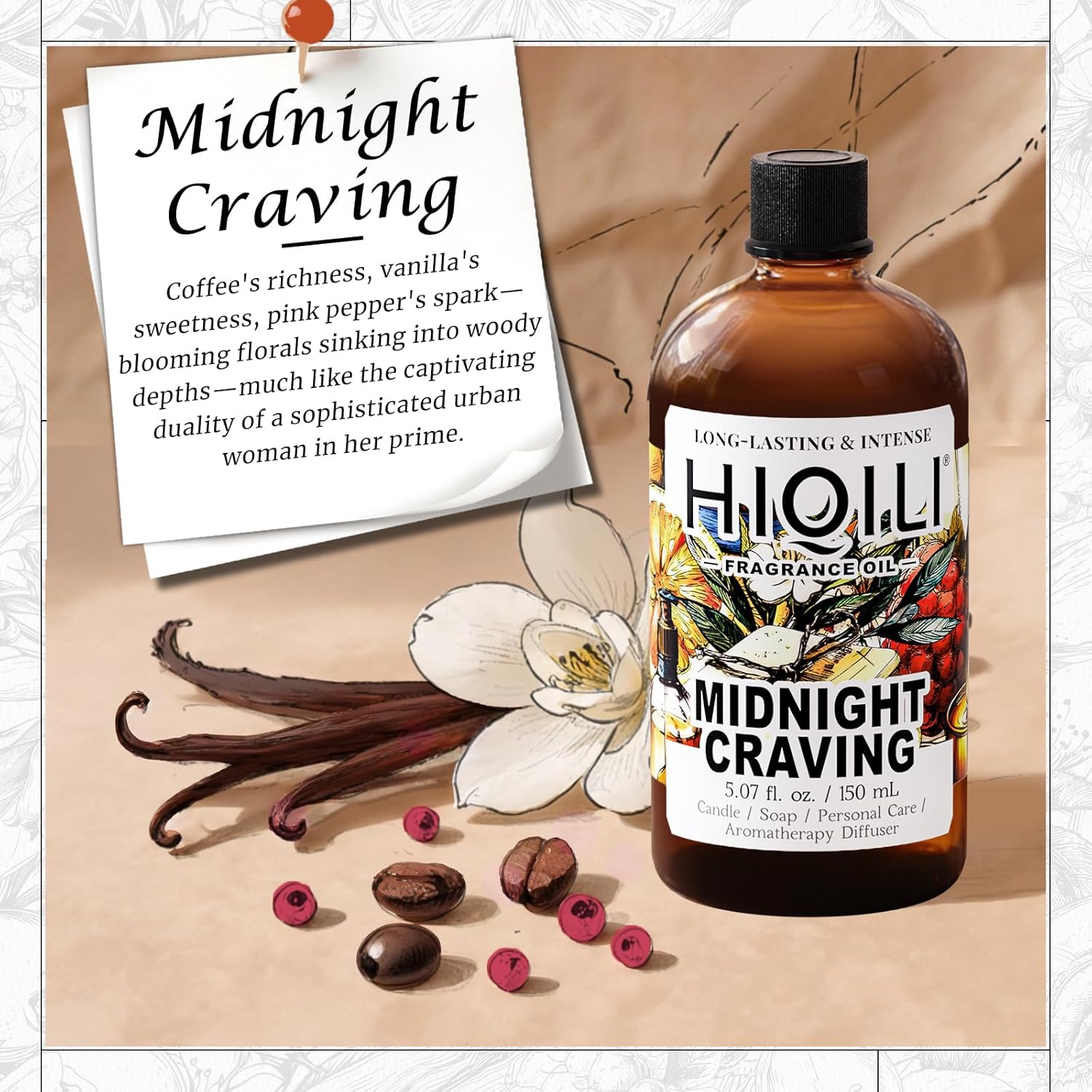 HIQILI Midnight Craving Fragrance Oil, Inspired by Y S.L's B.Lack O.pium, for Diffuser, Candle & Soap & Perfume Balm Making, Sweet Gourmand Aroma- 5.07 Fl Oz