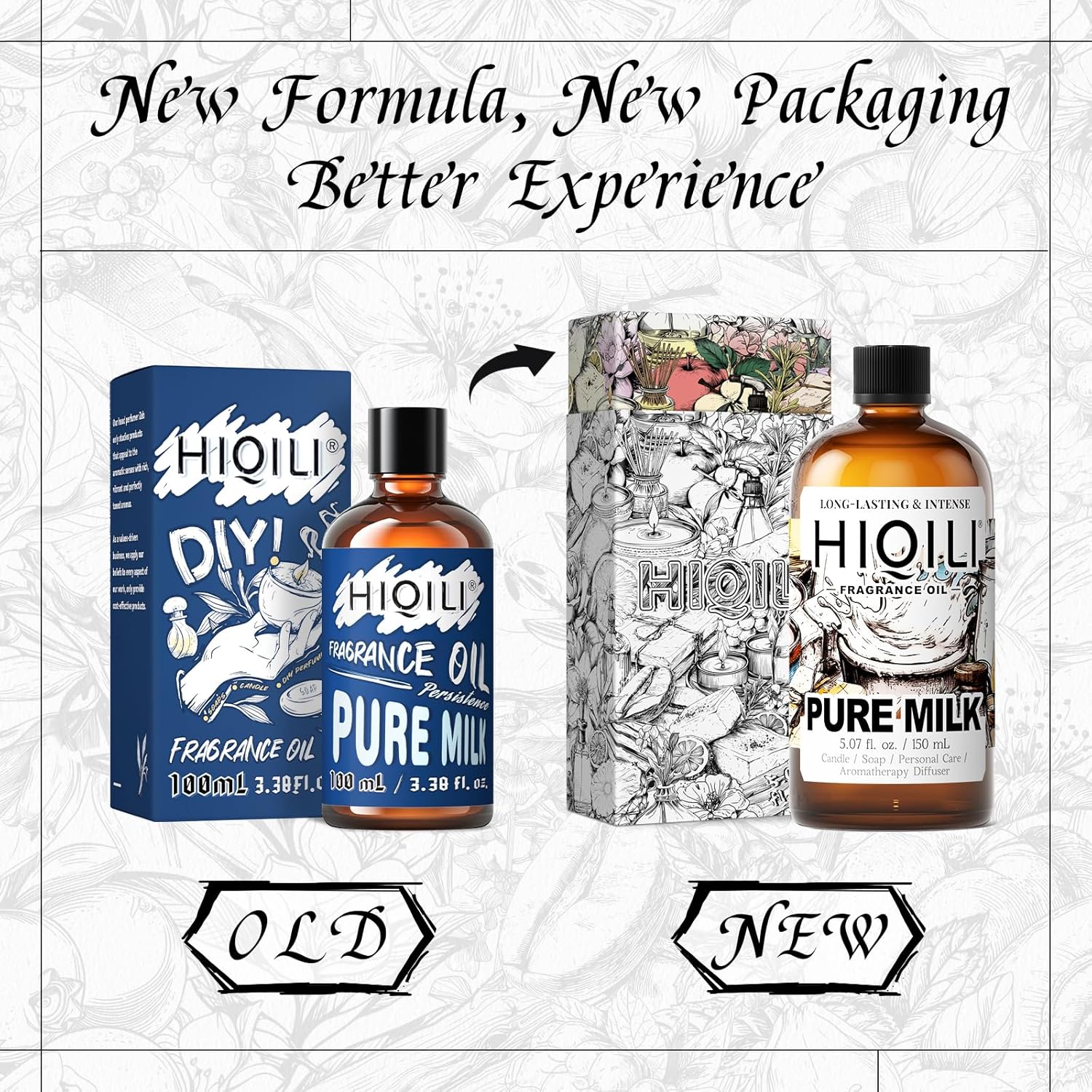 HIQILI Pure Milk Fragrance Oil for Home Diffuser, Ideal for Making Soap, Candles, Sugar Scrub, Skin & Body, Pet Safe - 5.07 Fl Oz