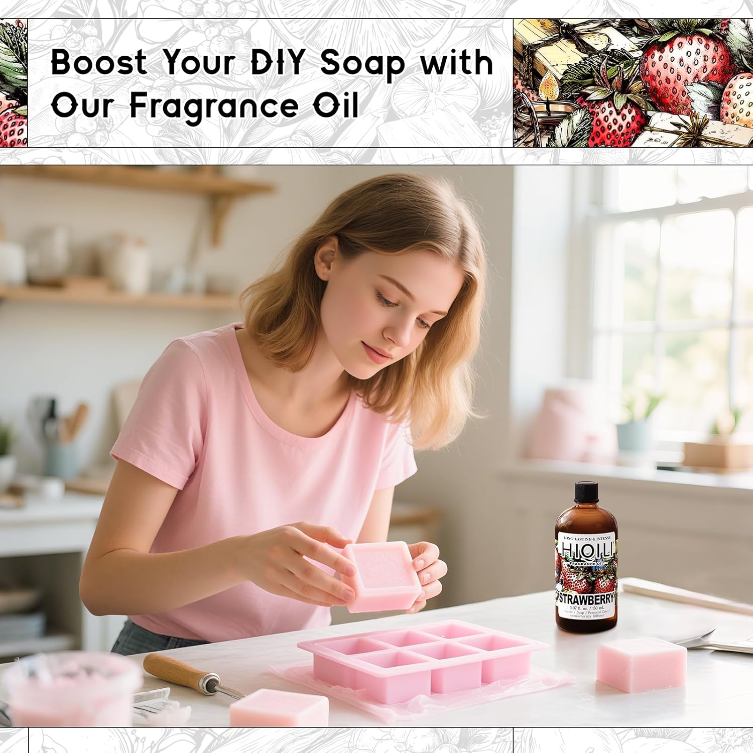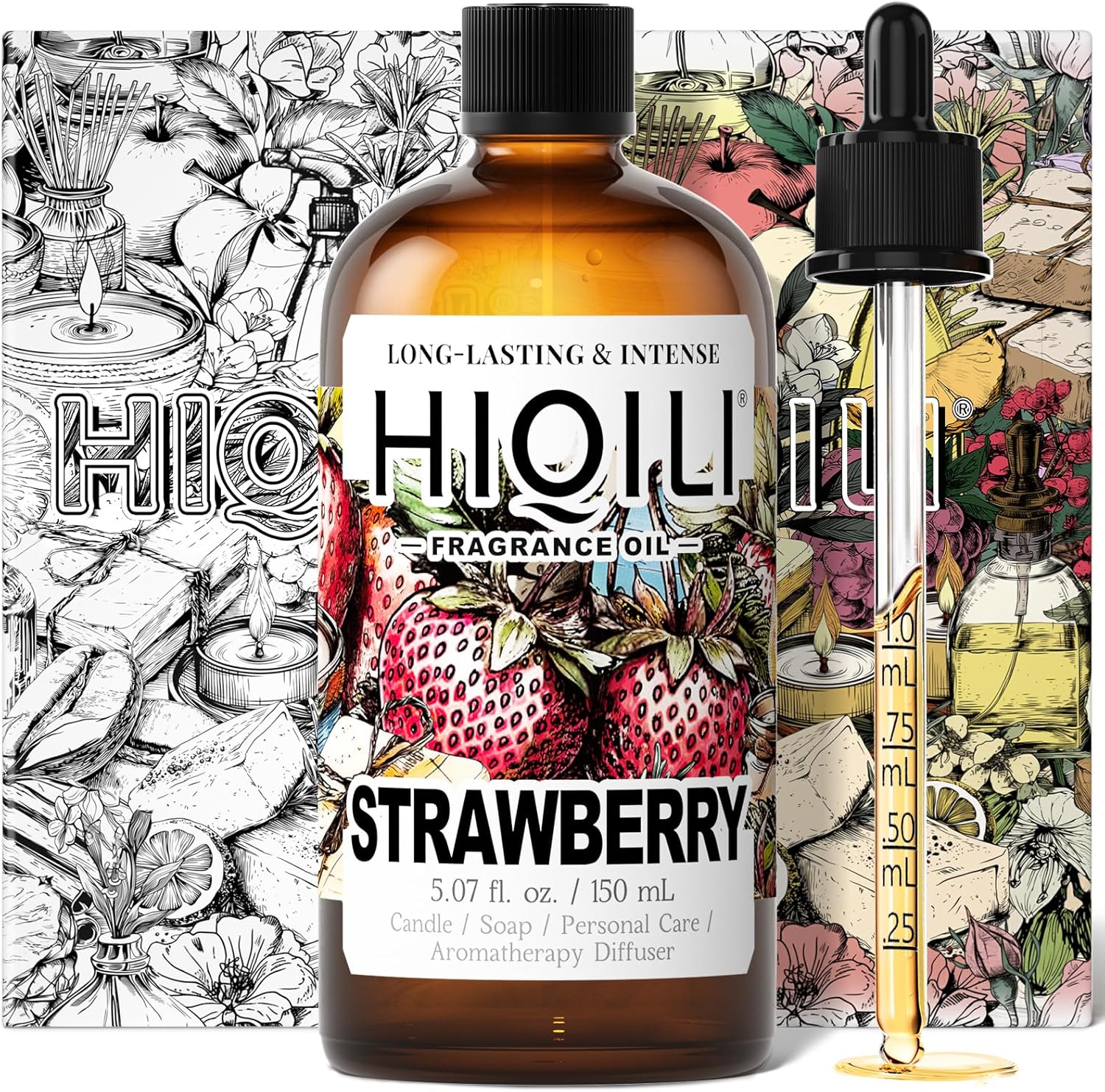 HIQILI Strawberry Fragrance Oil for Diffuser Use, Great for Candle, Soap, Body Butter Making, DIY Fruity Scent Perfume - 5.07 Fl Oz