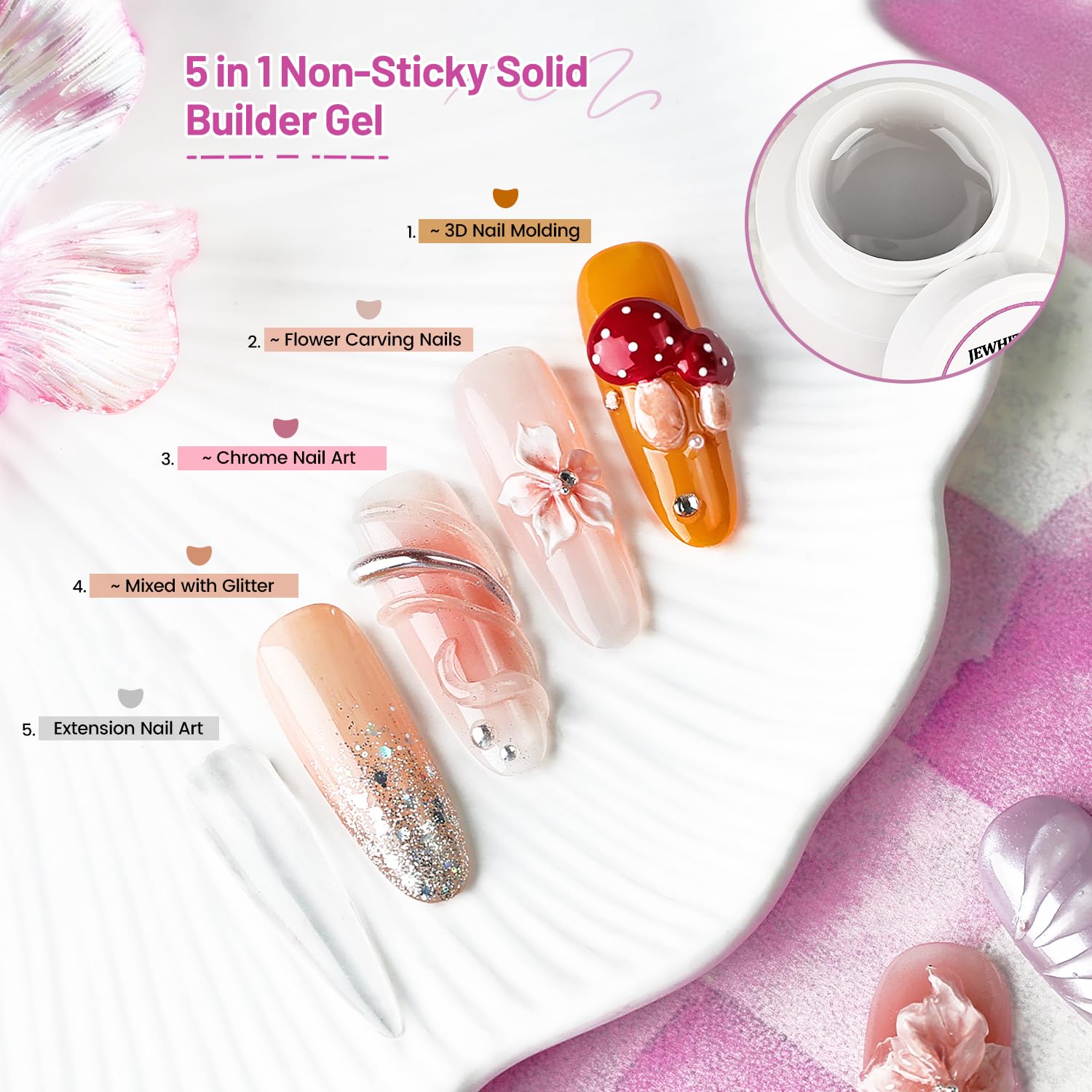 JEWHITENY 45g Large Capacity Clear Solid Builder Gel: Non-sticky 3D Sculpting Gel For Nail Extension, Nails Carving & 3D Molding Nail Art