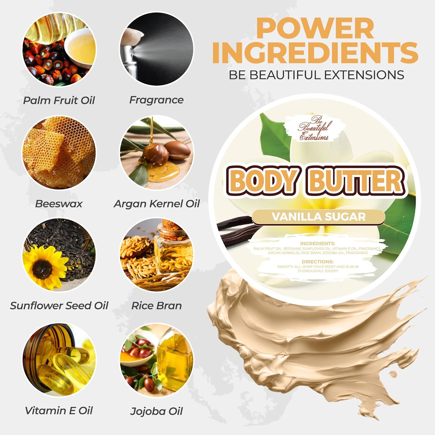 body butter vanilla sugar scent long -lasting fragrance,hydrate skin jojoba oil and more 8oz