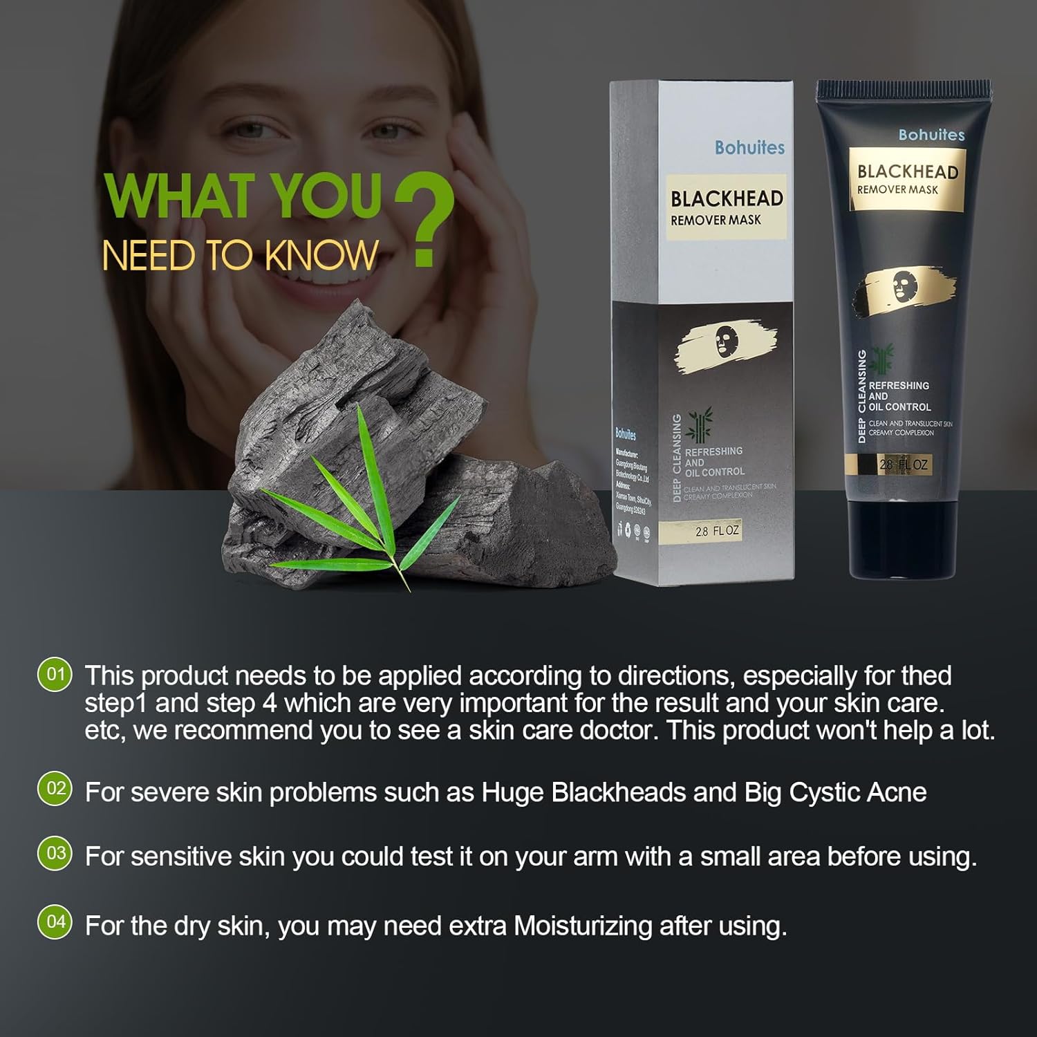 - πΏ Helps Reduce Blackheads in Minutes β This blackhead remover mask with natural bamboo charcoal draws out dirt, oil, and impurities to visibly reduce blackheads and leave skin feeling refreshed.