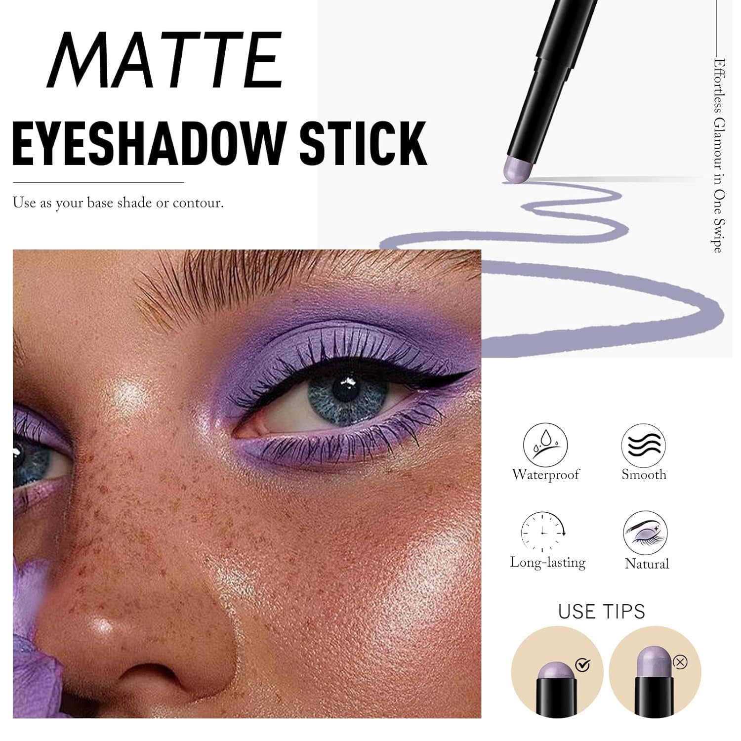 Cream Eyeshadow Stick, Matte Eye Shadow Stick Waterproof Neutral Nude Eyeliner Pencil Crayon Long-Lasting Eye Highlighter Makeup for Older Women Easy to Use High Pigmented, 20 Periwinkle