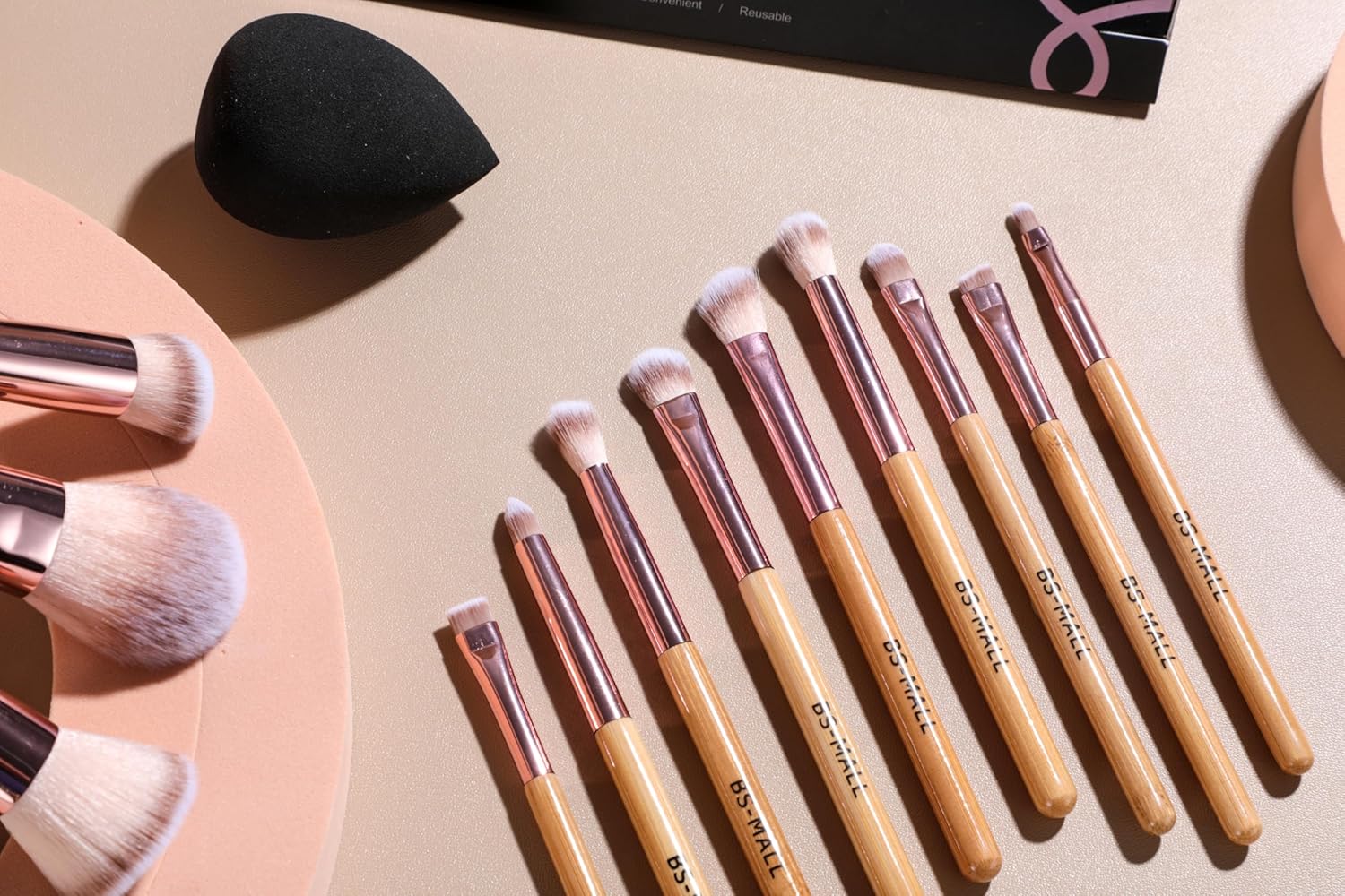 - 🌭Comprehensive Brush Collection: The BS-MALL 14 Pcs Makeup Brushes Set includes a diverse range of brushes designed for foundation, powder, concealers, eye shadows, and blush, ensuring you have the perfect tool for every makeup application need.