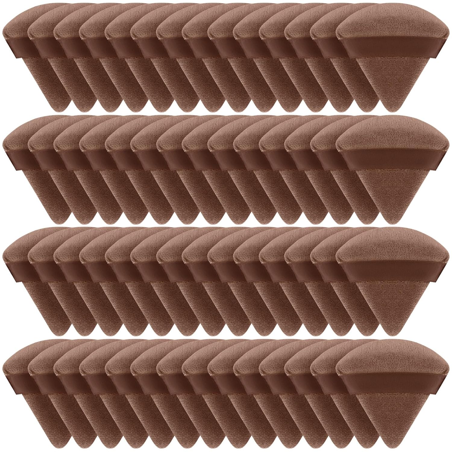 Suclain 48 Pcs Velour Triangle Powder Puff Soft Velour Makeup Puff for Face Powder Makeup Triangle Sponges for Wet and Dry Cosmetic Foundation Loose Mineral Body Tool(Brown)