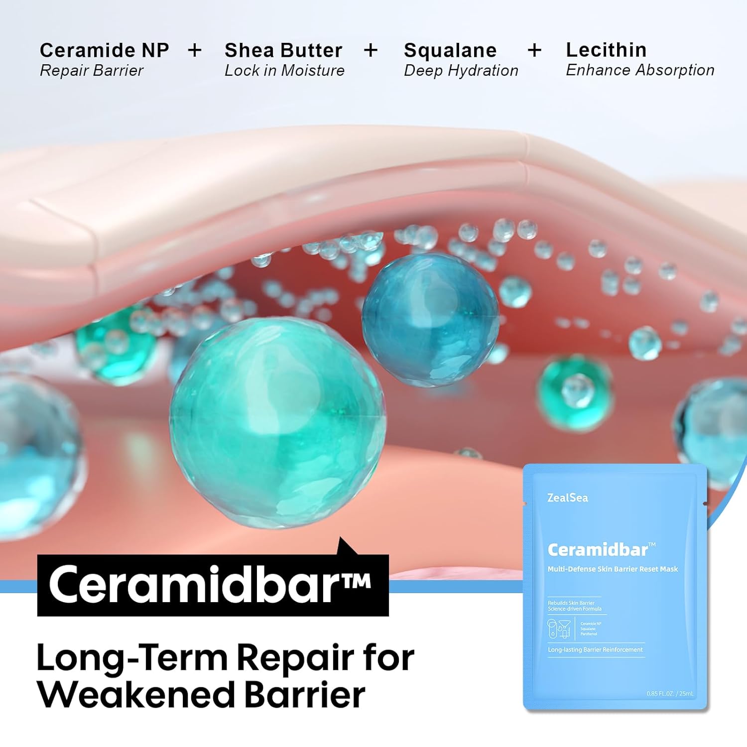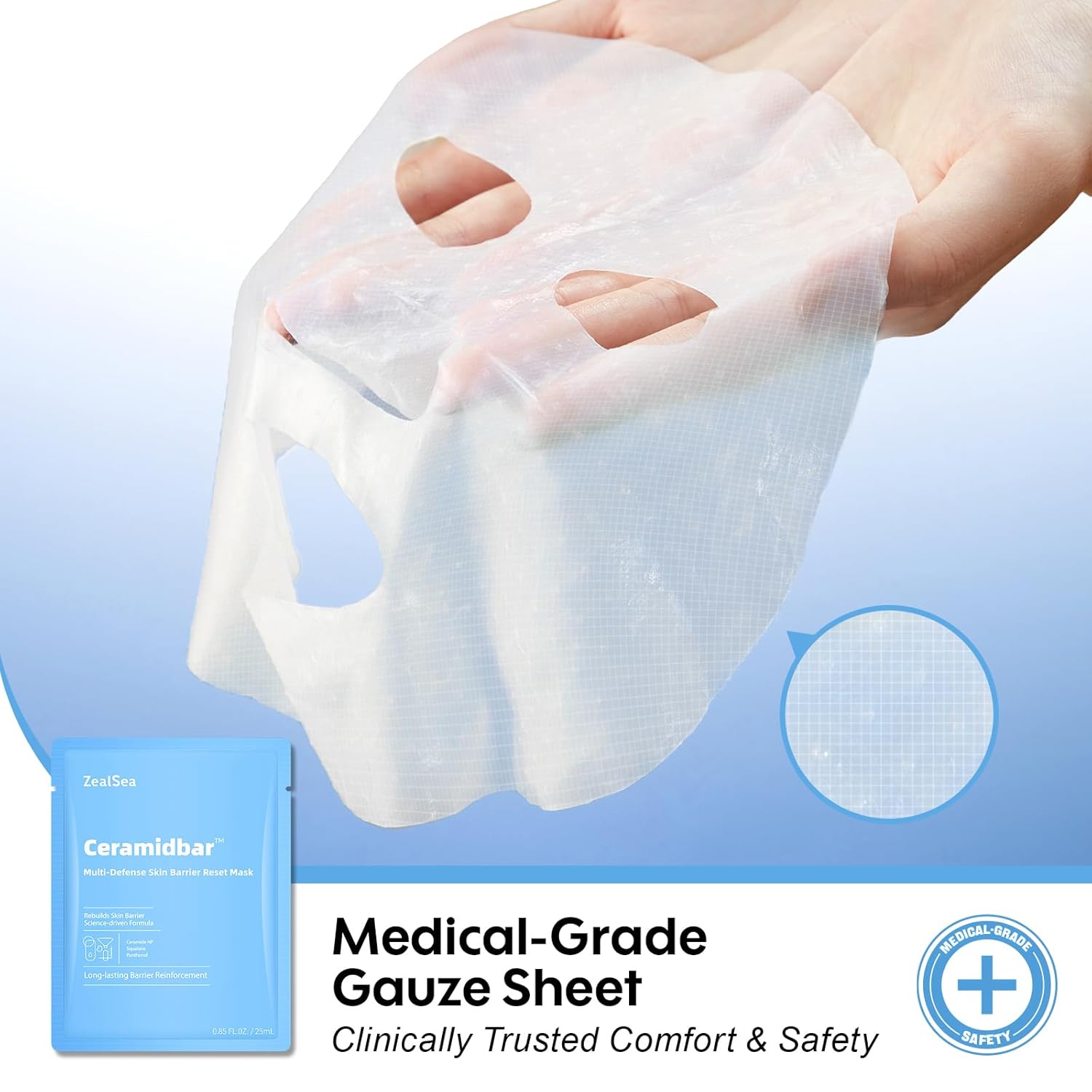 ZealSea Cicalix & Ceramidbar Face Masks Skincare Set, Derm Solution Sheet Mask for Multi-Trigger Sensitivity, Soothing & Calming, Strengthen & Restore Skin, Facial Mask with Cica & Ceramide, 8 Pack