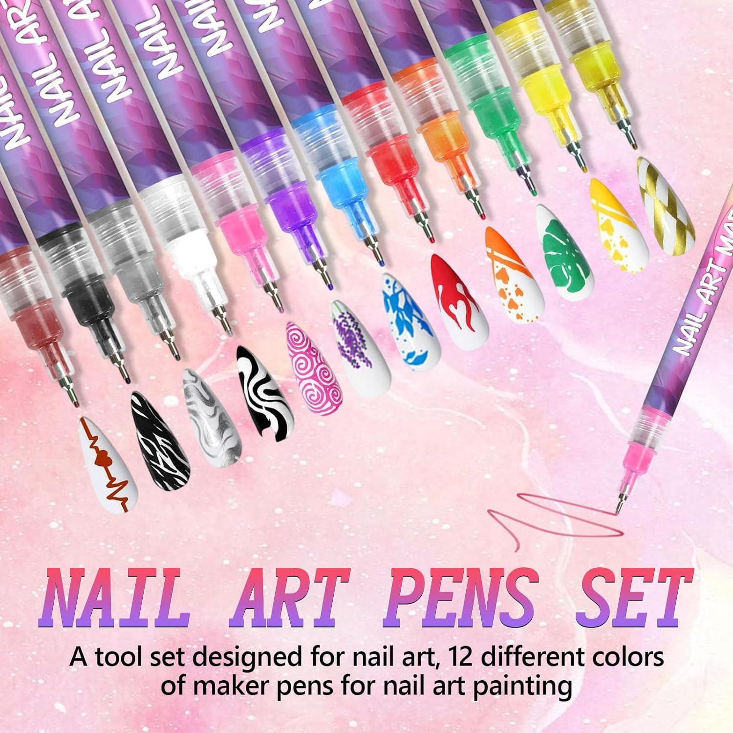 12 Colors Nail Art Pens Set, 3D Quick-Dry 0.5MM Nail Polish Pens, 2025 DIY Nail Art Marker Graffiti Dotting Pen for Nails Art Design Manicure Nail DIY Decoration