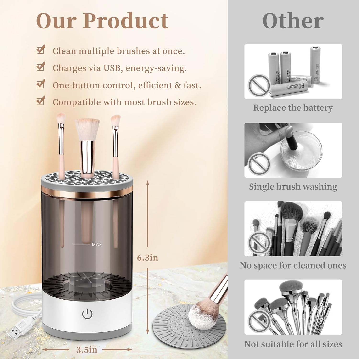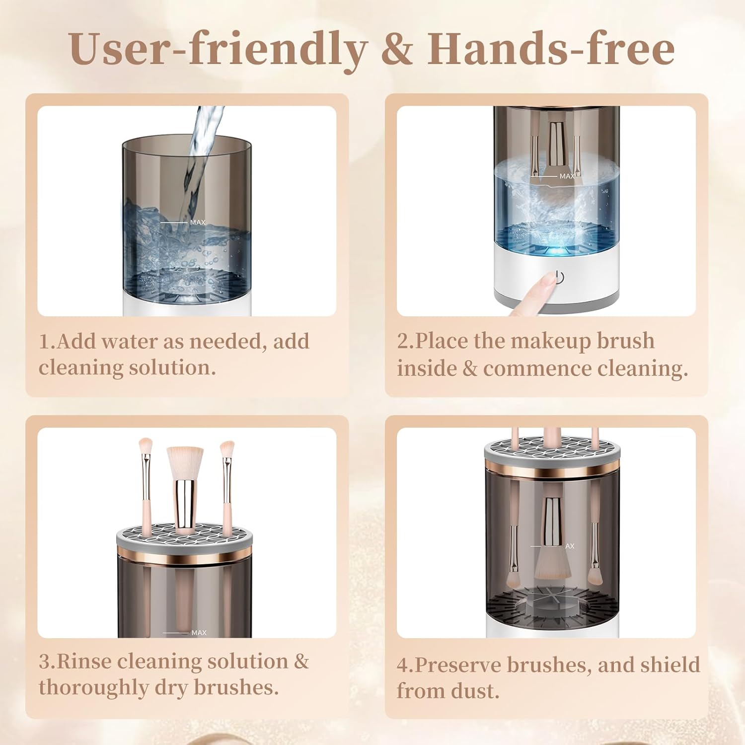 - Versatile and highly adaptive: Whether it is an eyeshadow brush, foundation brush, or blush brush, our makeup brush cleaner can handle them all, adapting to various types and sizes of brushes, ensuring your beauty tools remain clean at all times.